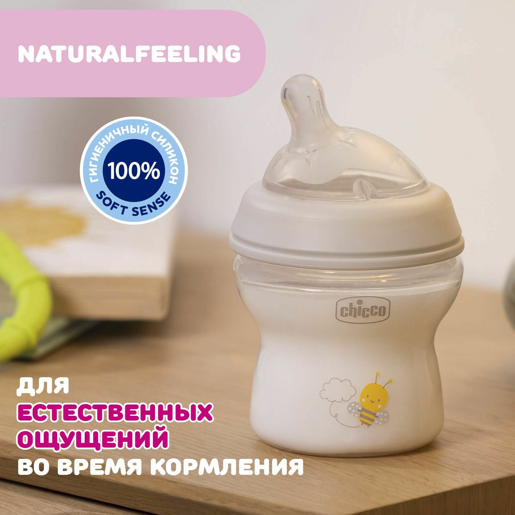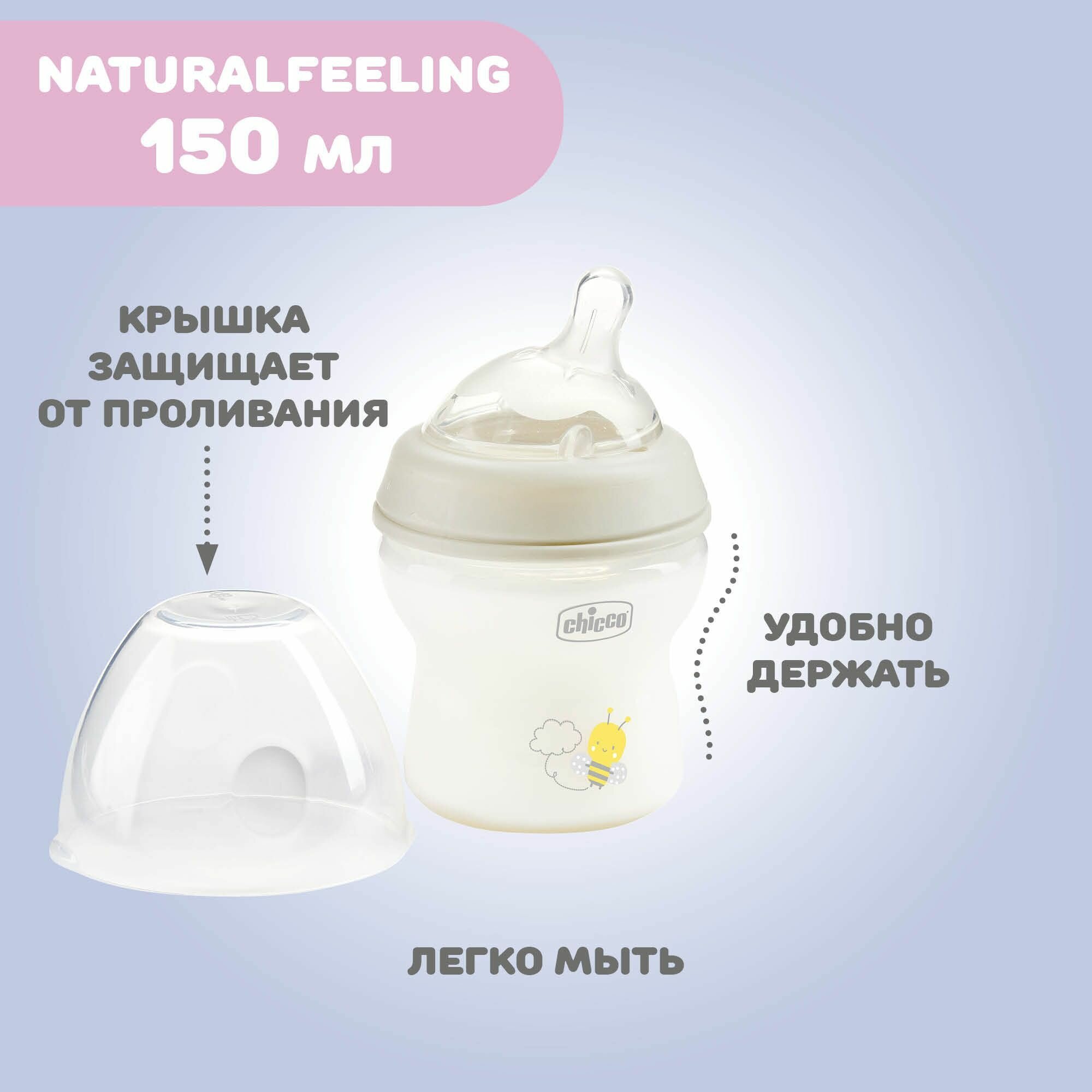 Бутылочка для кормления Chicco Natural Feeling с рождения, 150 мл пластиковая