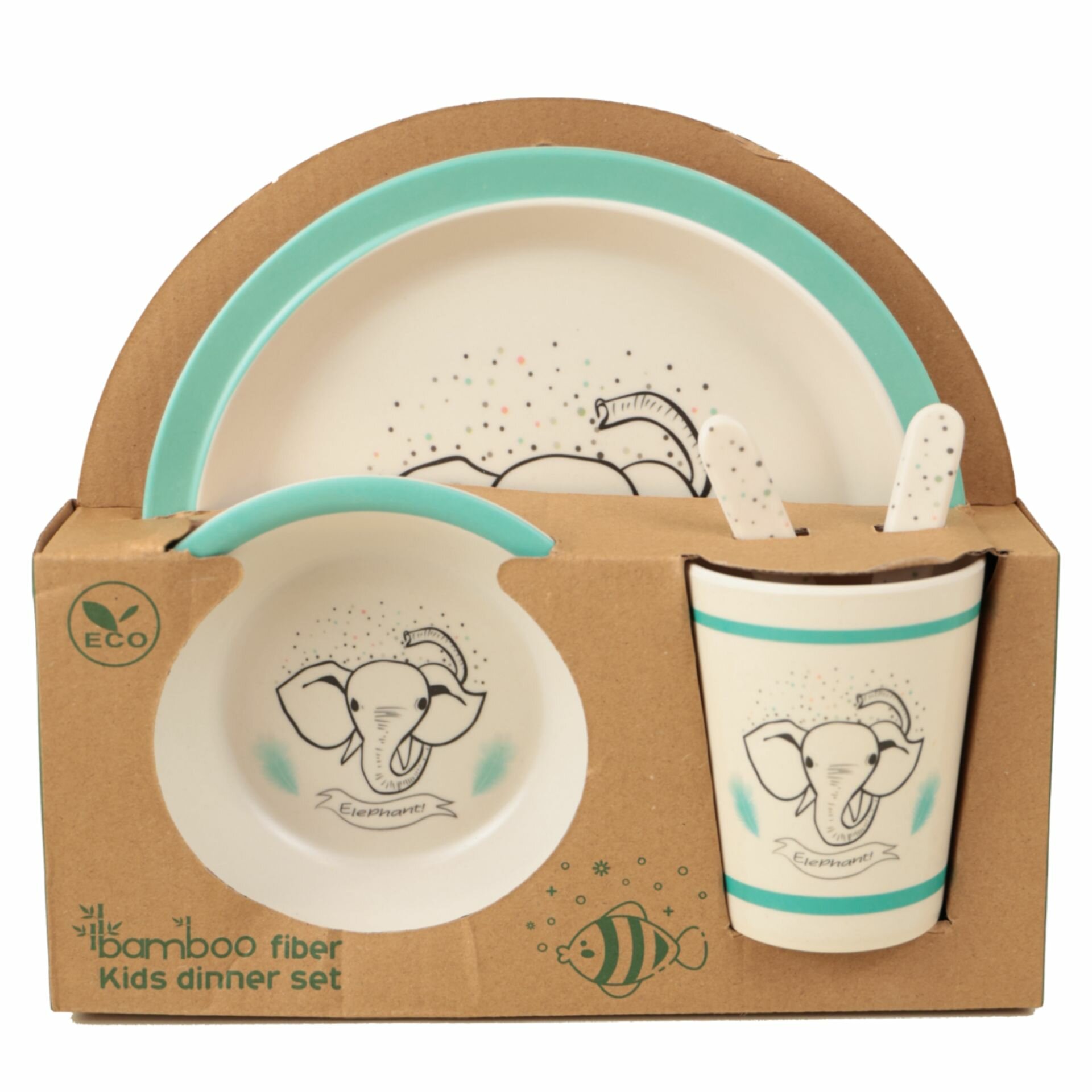 Купить Набор детской бамбуковой посуды "Rafiki" Слоник, тарелка, миска, стакан, приборы, 5 предметов