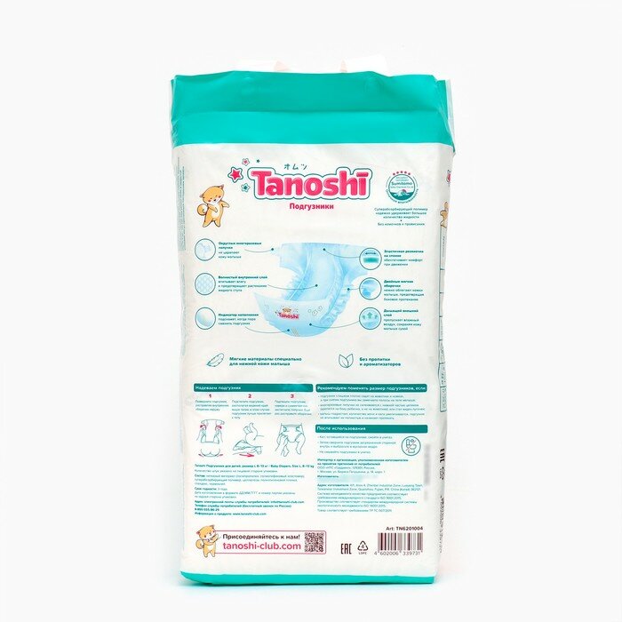 Tanoshi Подгузники для детей, размер L 8-13 кг, 54 шт. интересное: