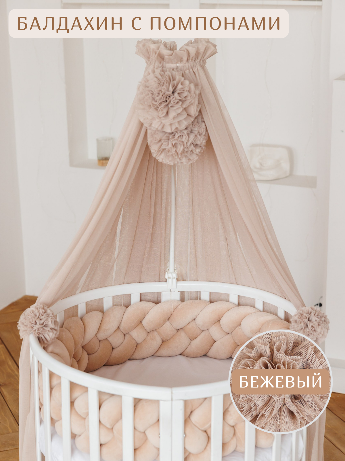 Балдахин на детскую кроватку с помпонами цвет Бежевый интересное: