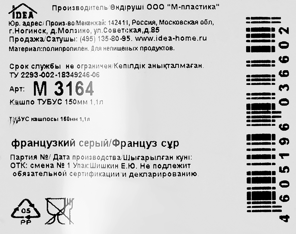 Ниже Вы можете прочитать отзывы на Кашпо / горшок для цветов тубус 150мм 1,1л IDEA, Французский серый, ознакомится с подробными характеристиками, посмотреть интересные обзоры и фотографии на Кашпо / горшок для цветов тубус 150мм 1,1л IDEA, Французский серый.