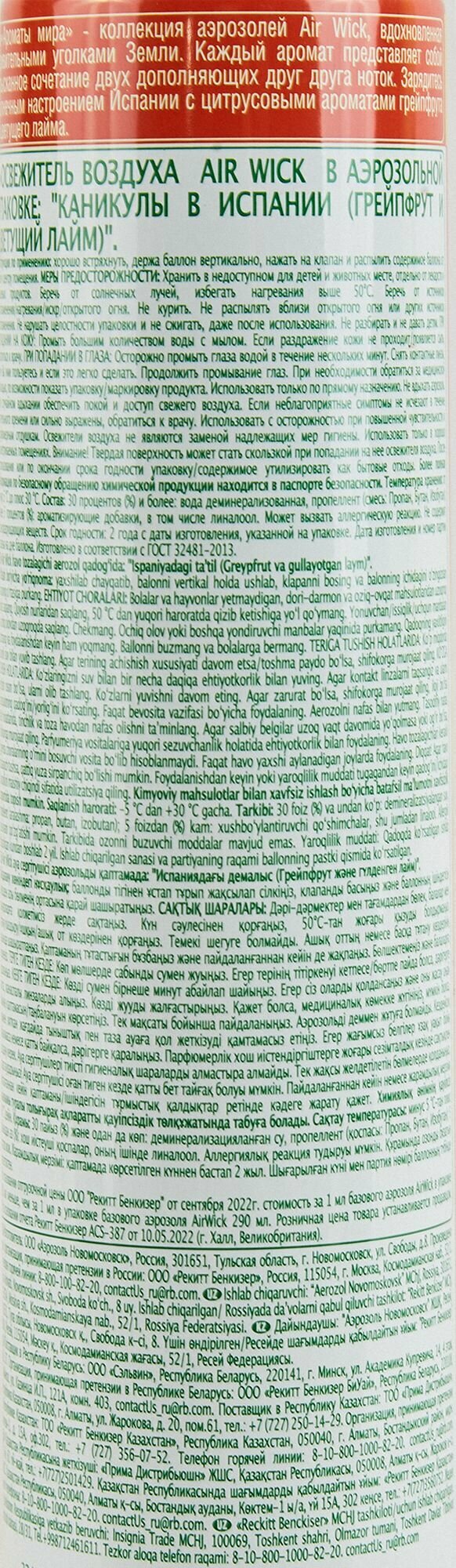 Сохранитьосвежитель воздуха AIR WICK Каникулы в Испании 400мл аэрозоль интересное: