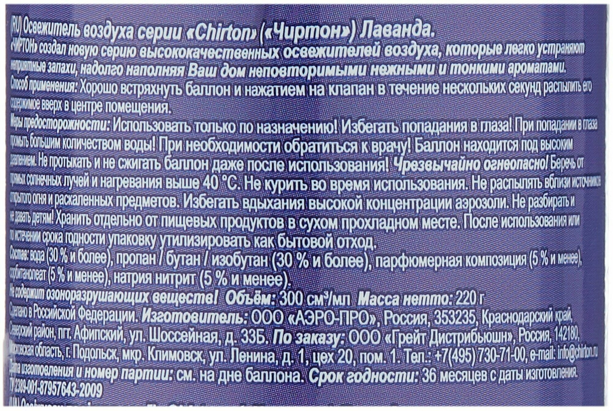 Чиртон / Chirton - Освежитель воздуха Лаванда, 300 мл