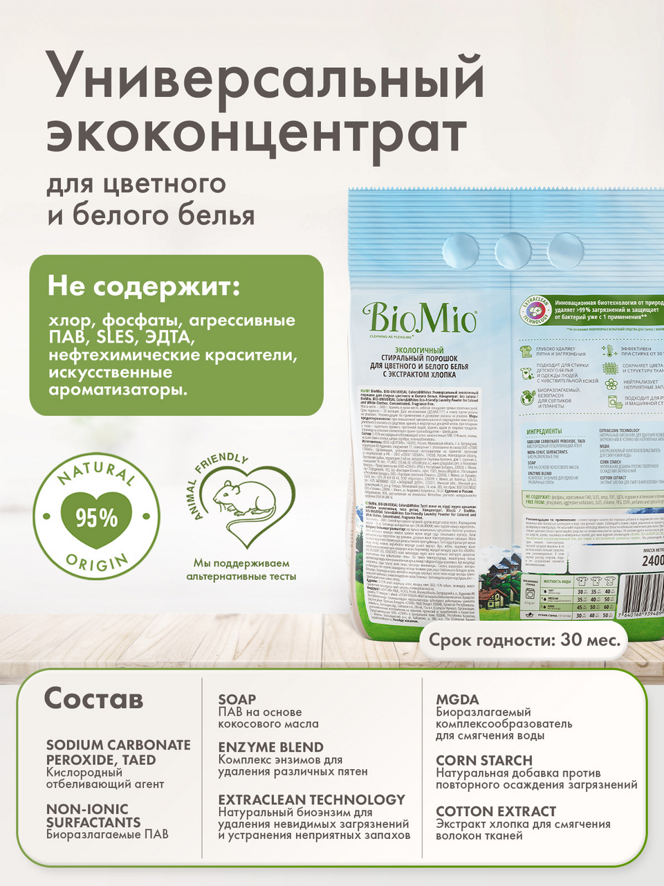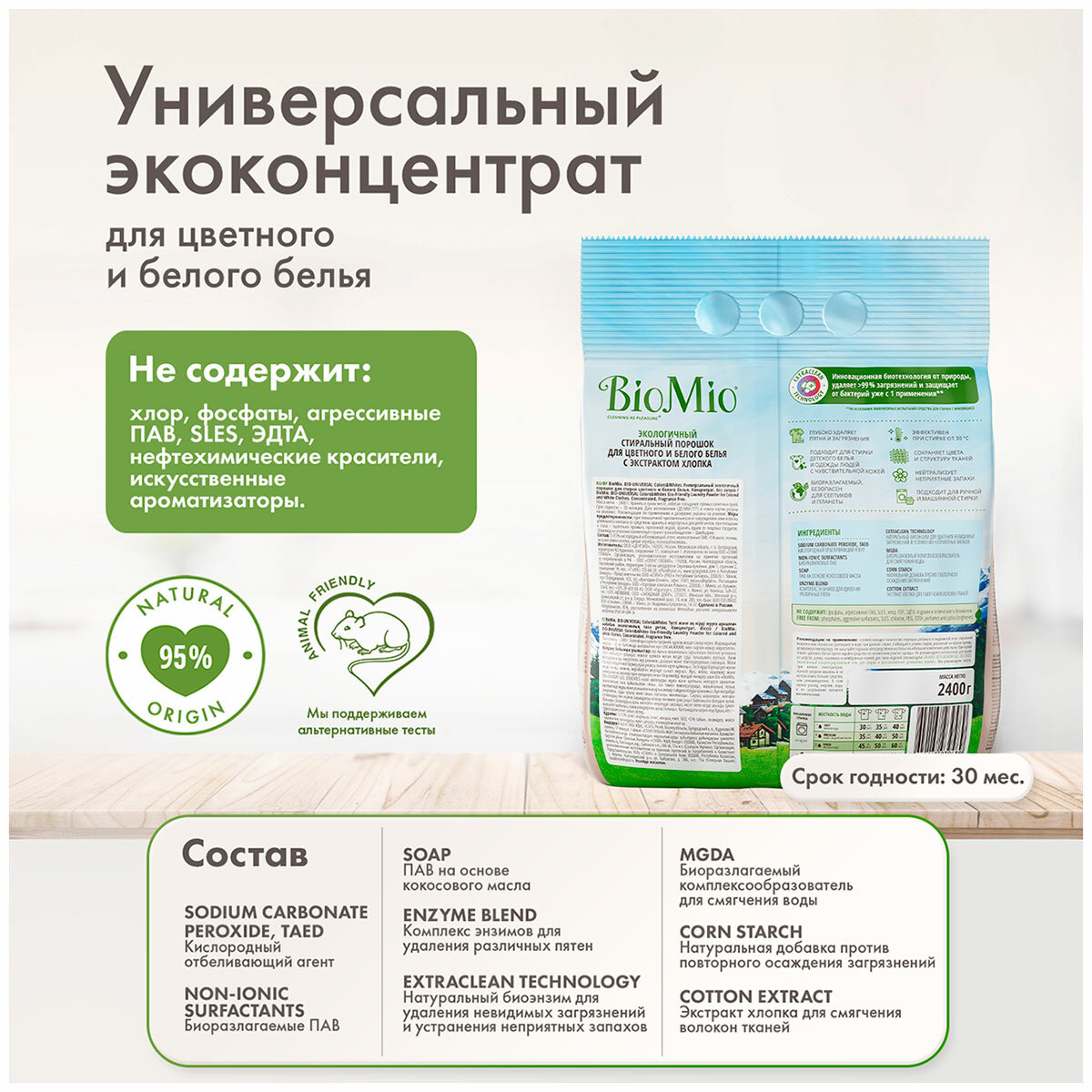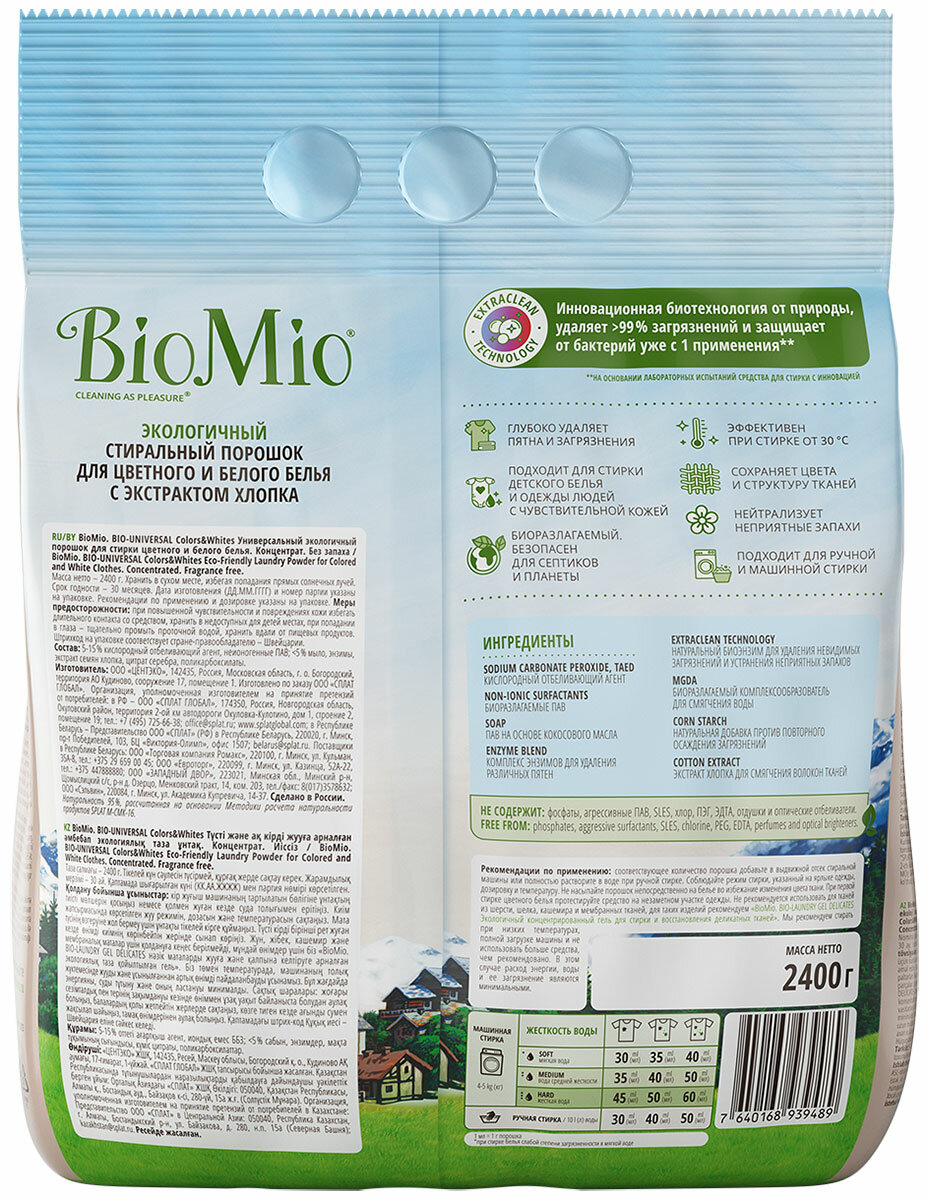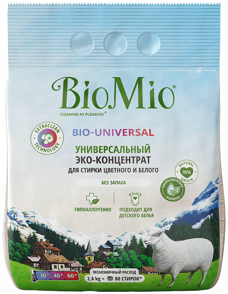 Стиральный порошок Biomio BIO-UNIVERSAL Colors&Whites для цветного и белого белья, экологичный, концентрированный, 2.40 кг интересное:
