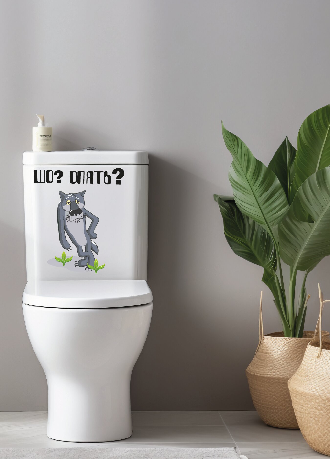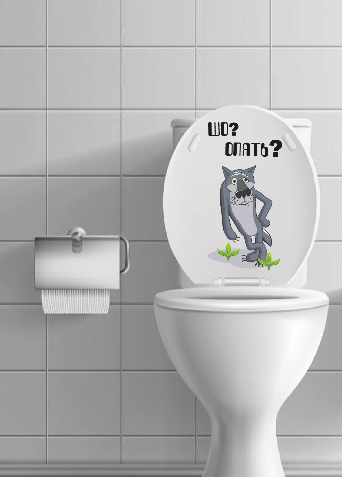 Забавные стикеры наклейки для унитаза Серый волк - мини смыть не забудь