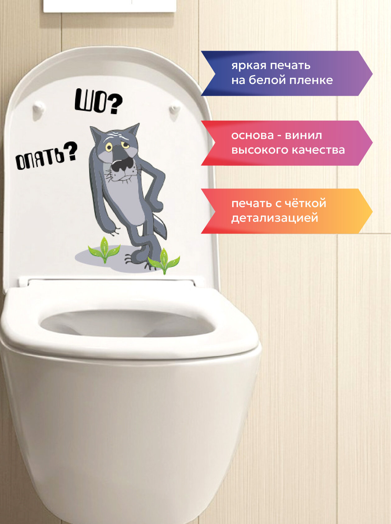 Наклейки интерьерные матовые на унитаз/холодильник/дверь принт Волк из мультика Жил был пес