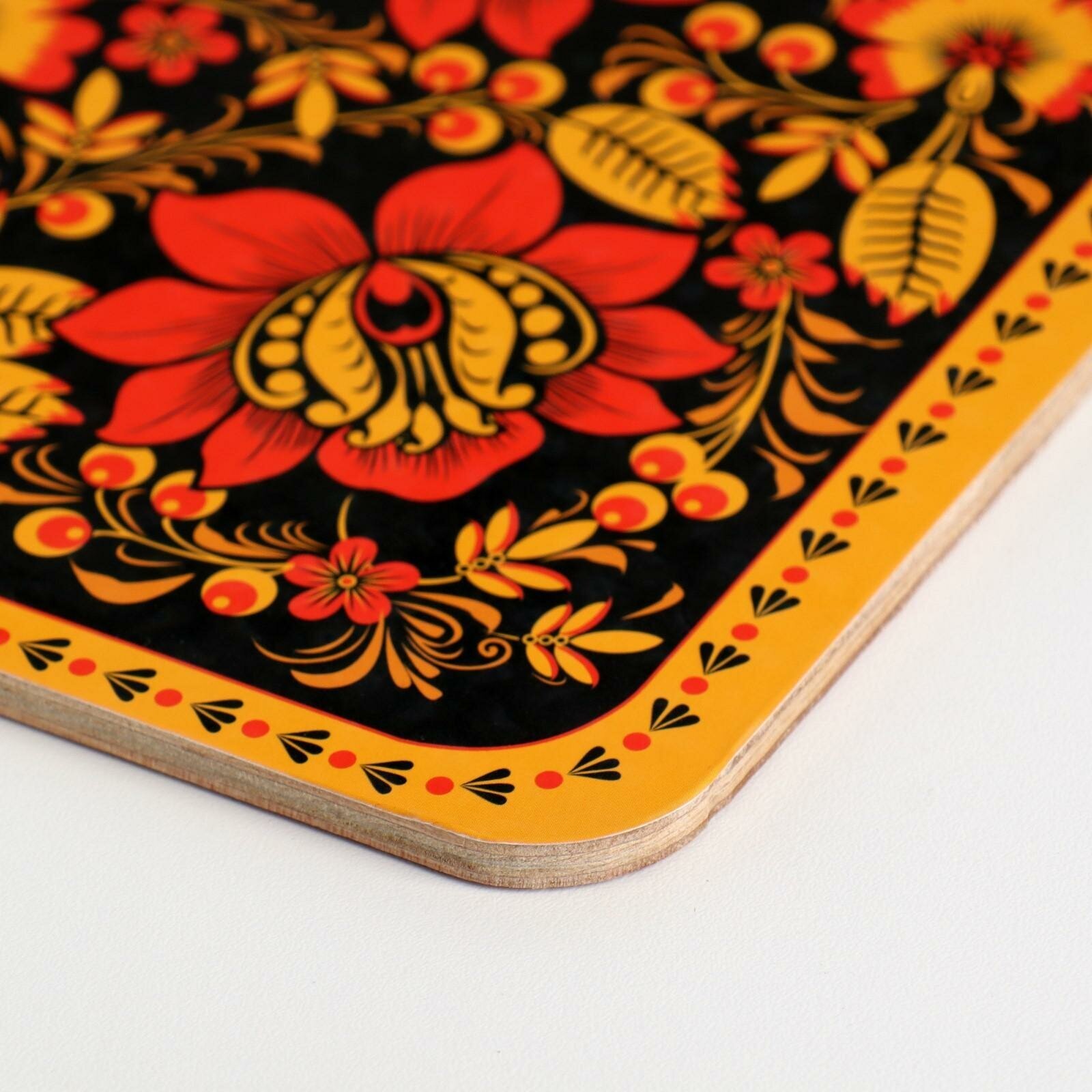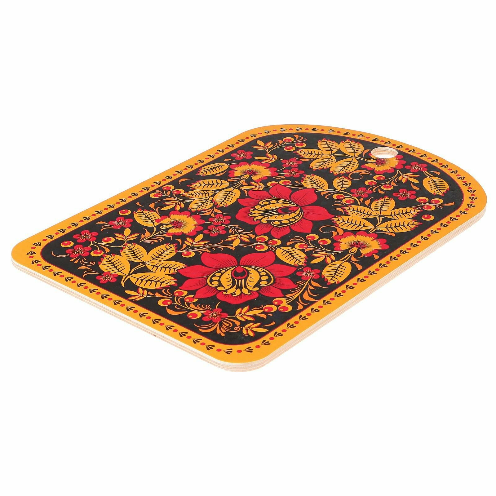 Доска разделочная и сервировочная Дарим Красиво сувенирная "Хохлома, черный фон", 19,5х27,5 см