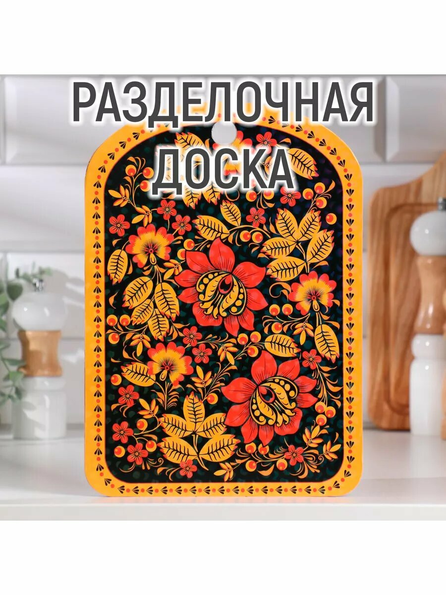 Доска разделочная сувенирная "Хохлома, чёрный фон" интересное: