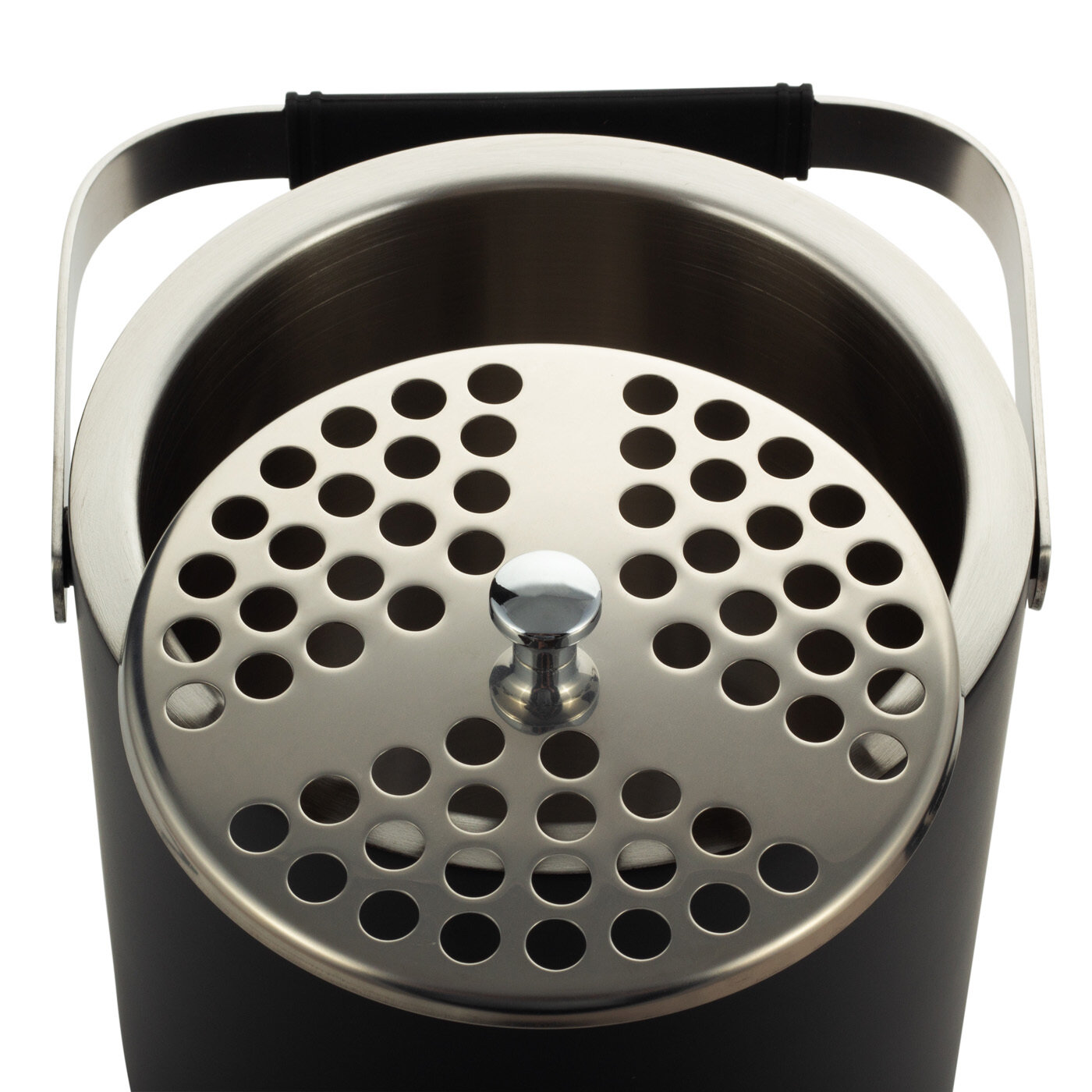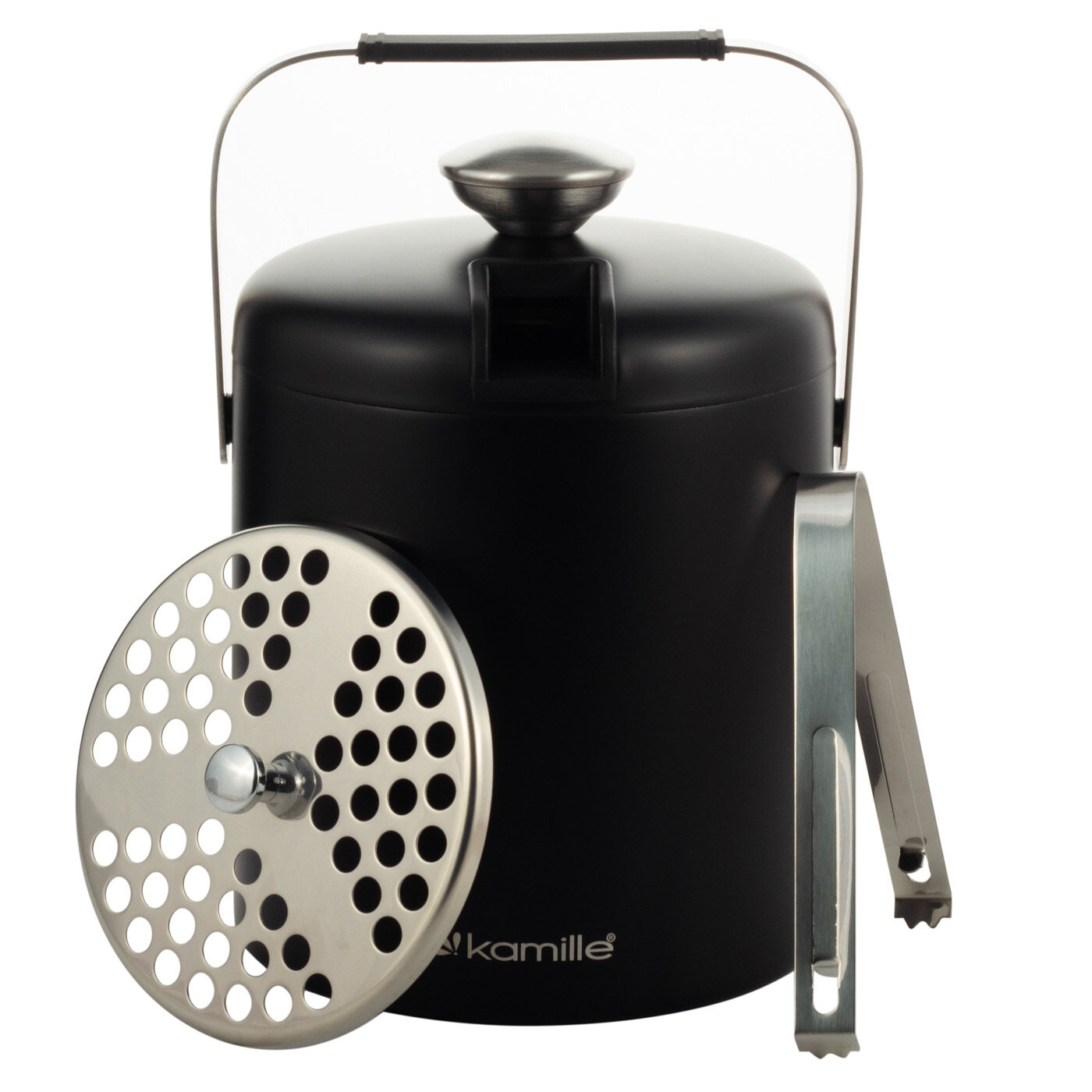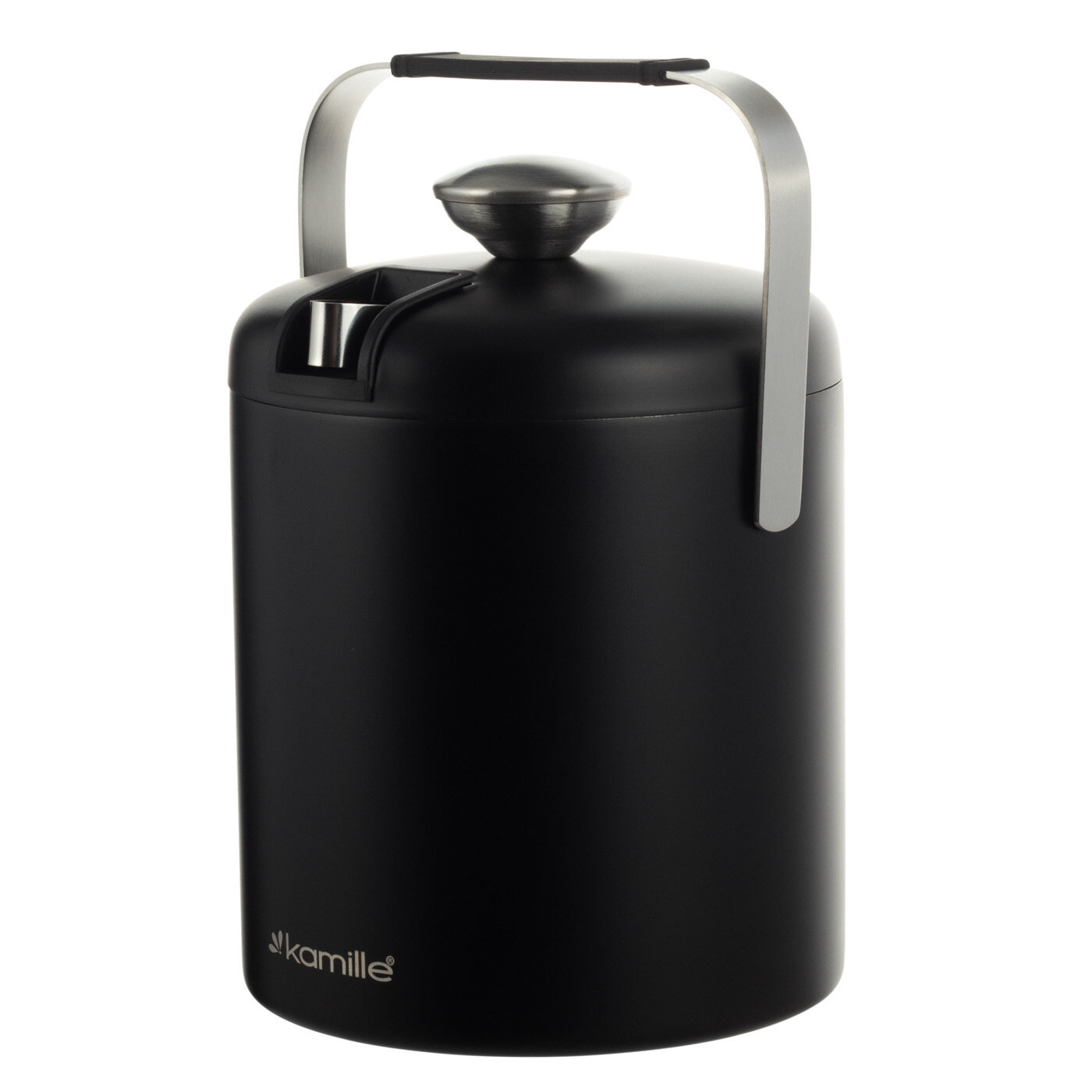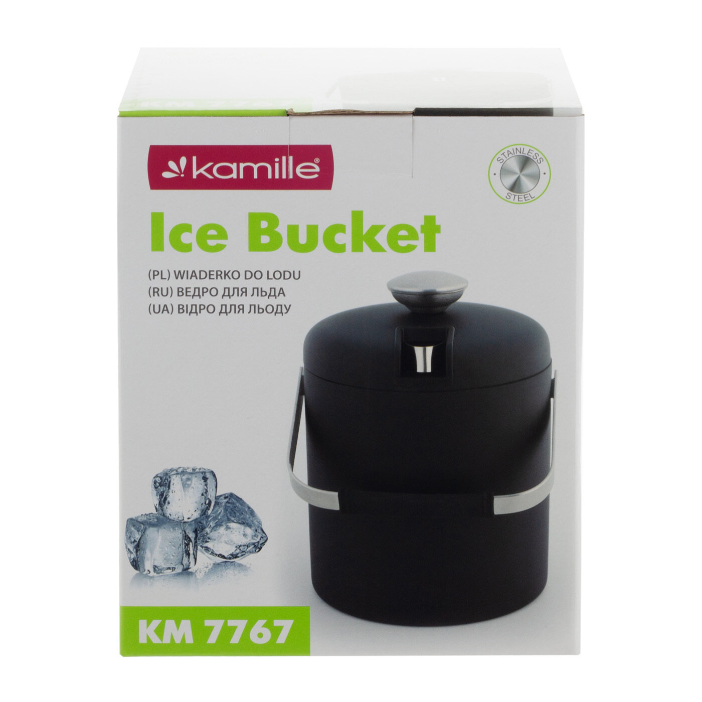 Ведерко для льда 1300 мл. с крышкой Kamille KM 7767 из нержавеющей стали с ручкой и щипцами (1,3 л. / черный)