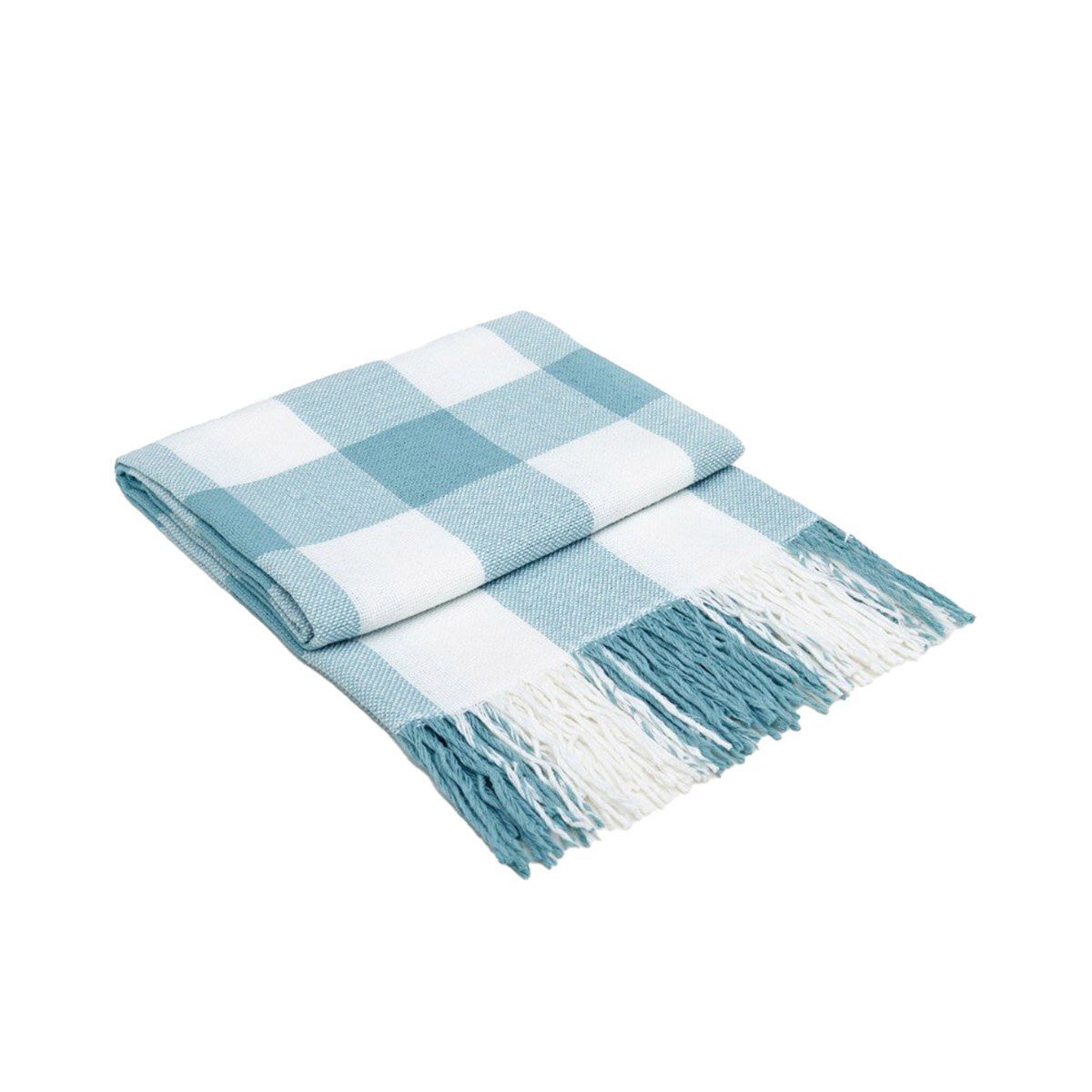 Плед Пикник 140х200см, белый/мятный, хлопок 20%, пан 40%, полиэстер 40%