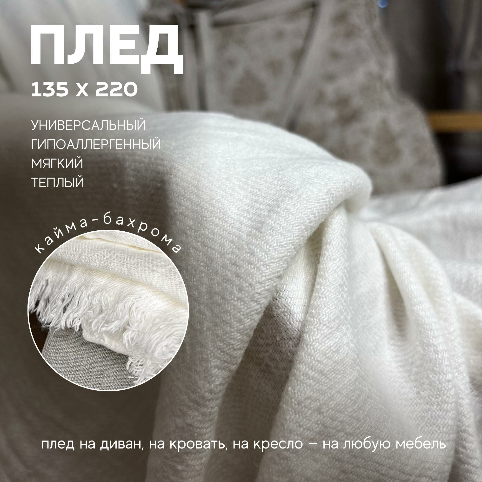 Плед льняной "Linprotex" - покрывало на кровать 135 х 220 см, белый цвет интересное: