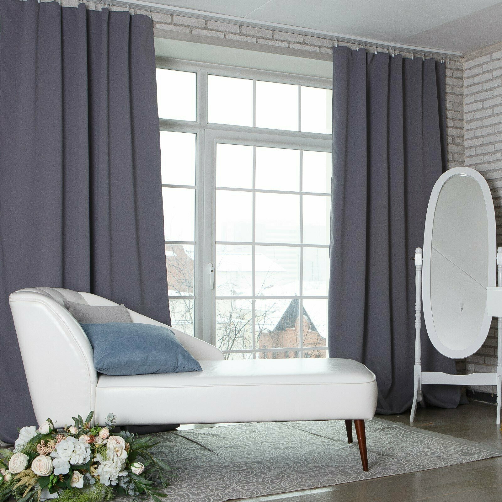 Штора портьерная "Этель" 250х265 см, блэкаут, цвет металл