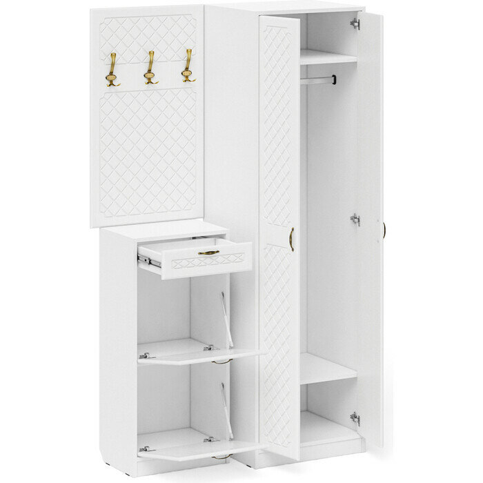 Купить Мебель для прихожей П-6 № 18, цвет белая шагрень/фасады МДФ белое дерево фрезеровка ромб, ШхГхВ 120х50х210 см., универсальная сборка