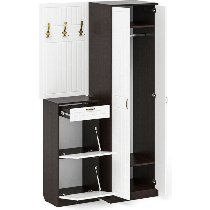 Мебель для прихожей П-6 № 18, цвет венге/фасады МДФ белое дерево фрезеровка прованс, ШхГхВ 120х50х210 см, универсальная сборка