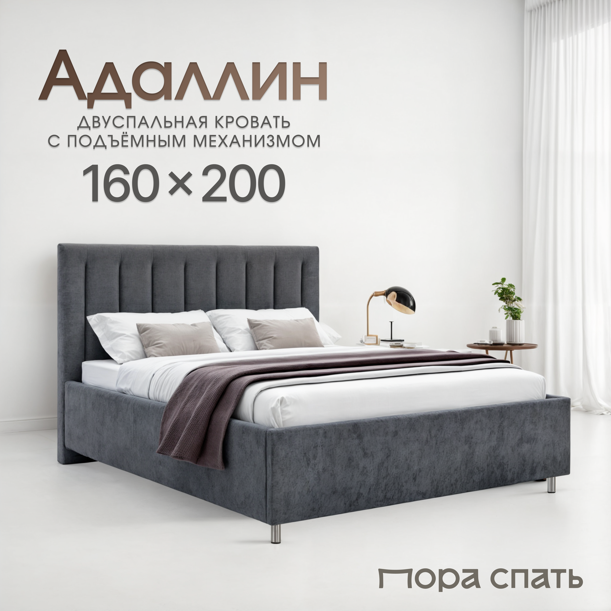 Кровать Пора Спать, Адаллин, с подъемным механизмом, спальное место: 180х200см, габариты: 191х213см, цвет: серый