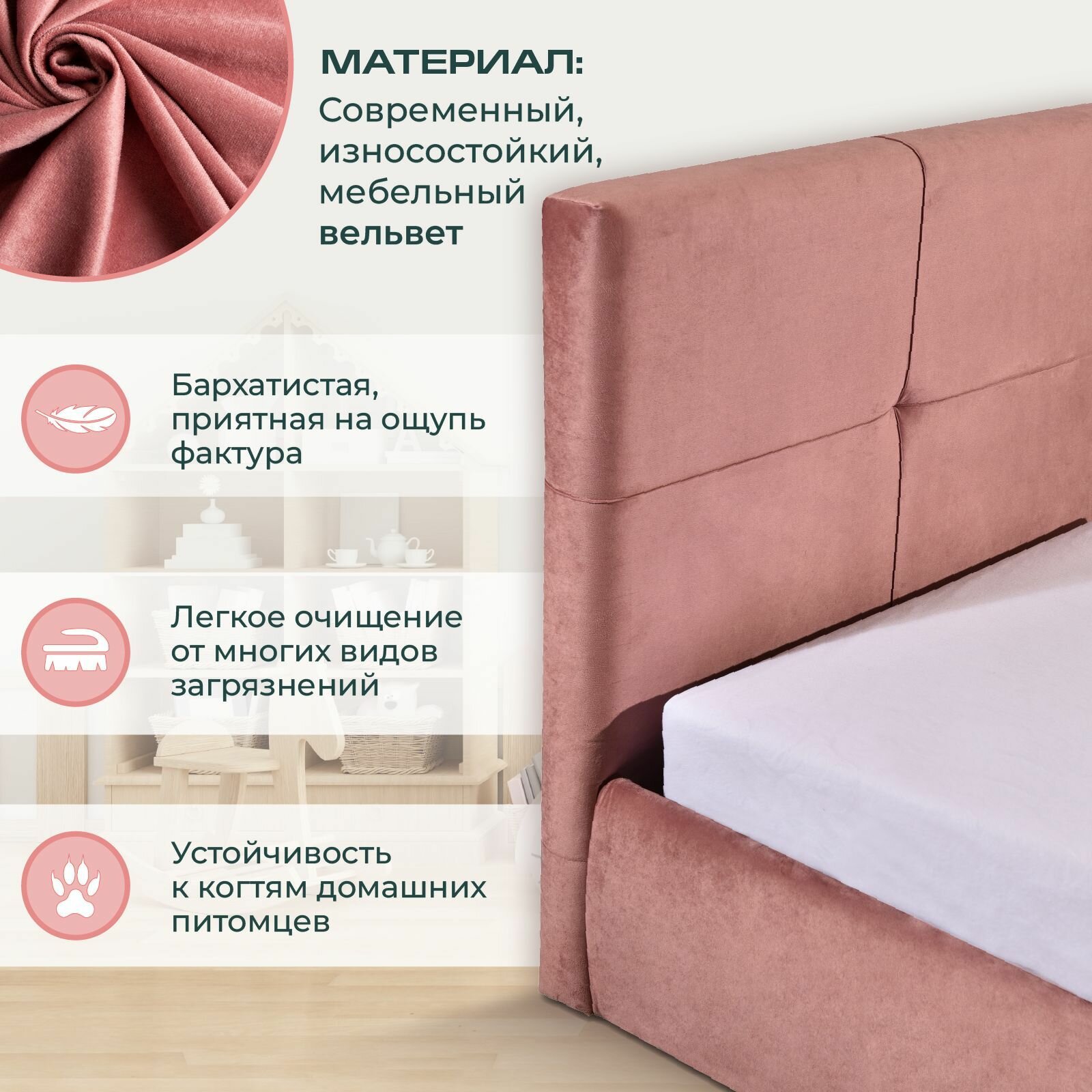 СохранитьДетская односпальная кровать 90х200 см Прима мод.1, подростковая для дома и спальни, вельвет розовый, АМИ Мебель интересное: