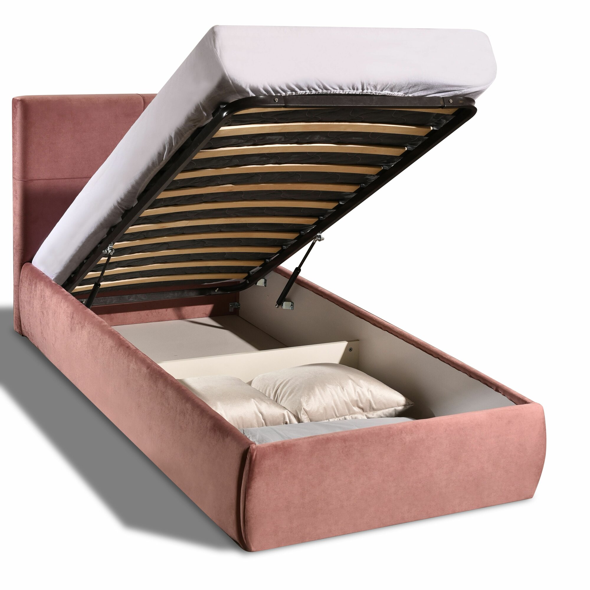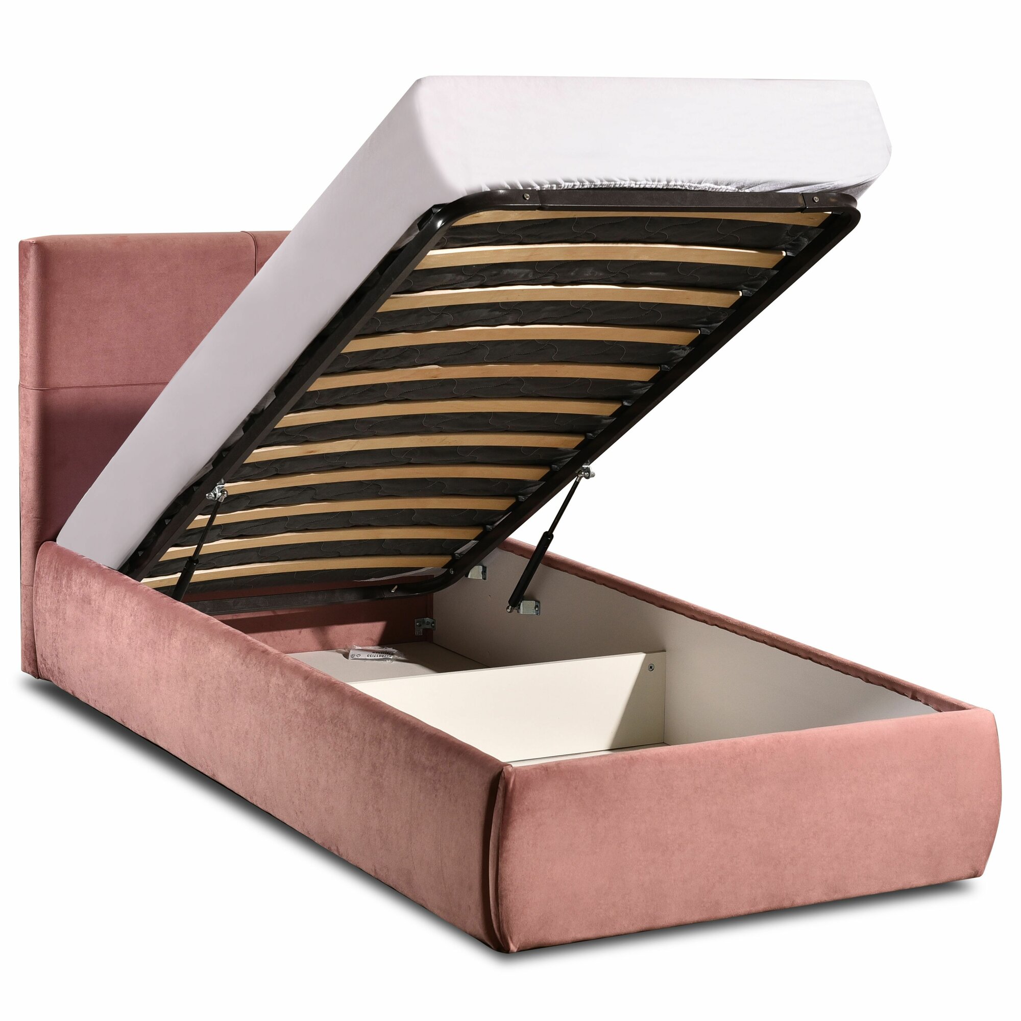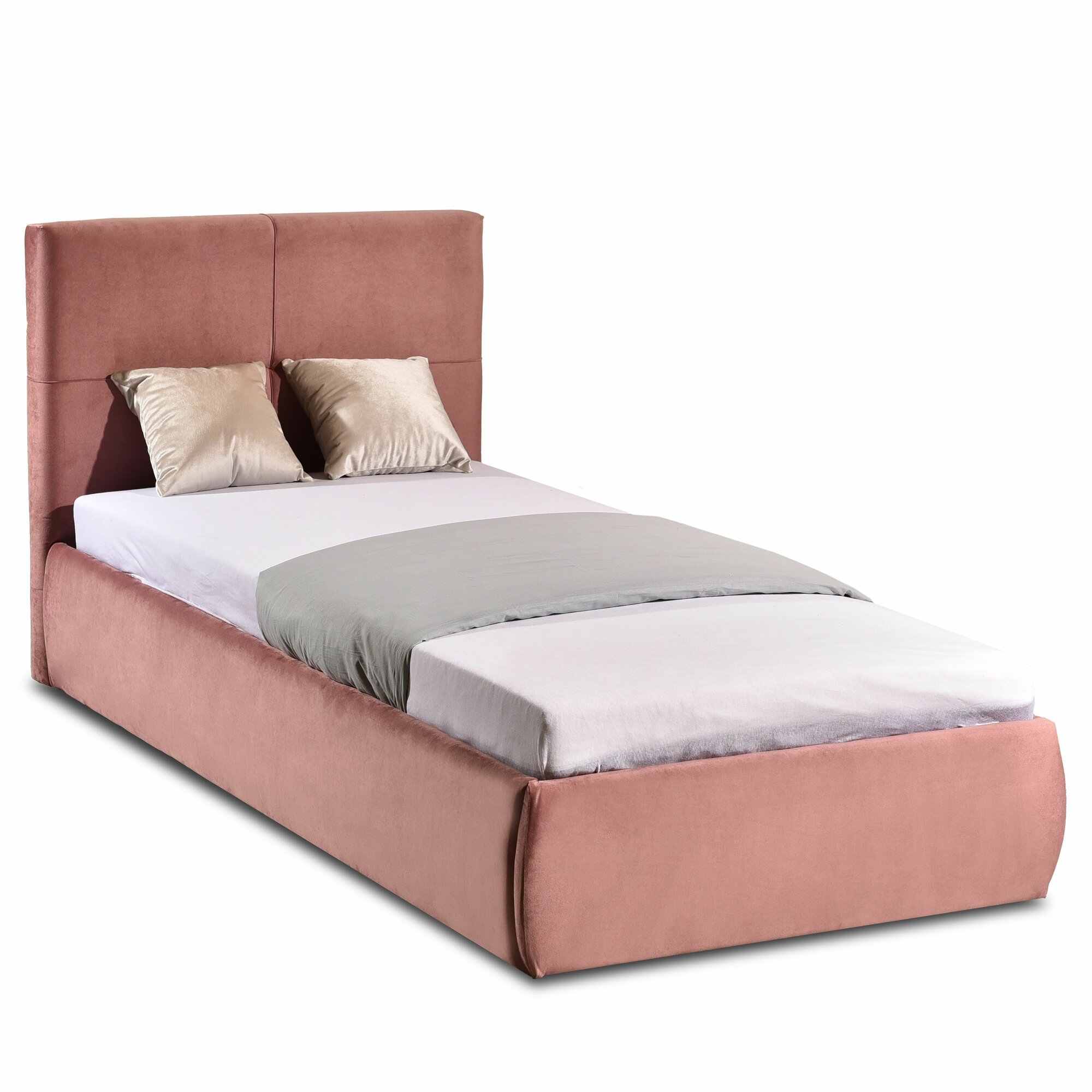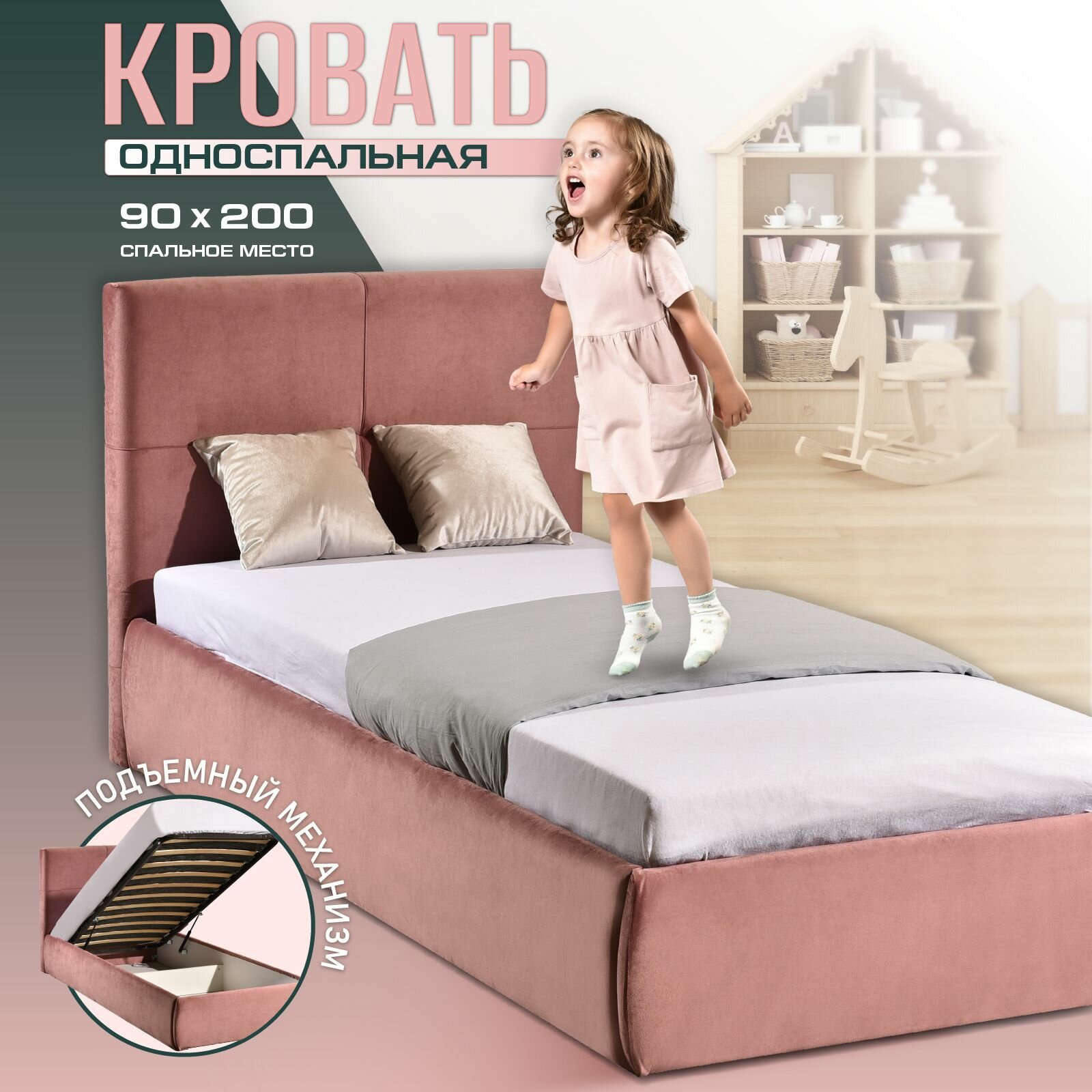 Купить Детская односпальная кровать 90х200 см Прима мод.1, подростковая для дома и спальни, вельвет розовый, АМИ Мебель