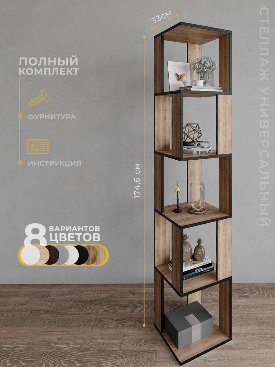 Деревянный напольный стеллаж высокий для книг дуб сонома