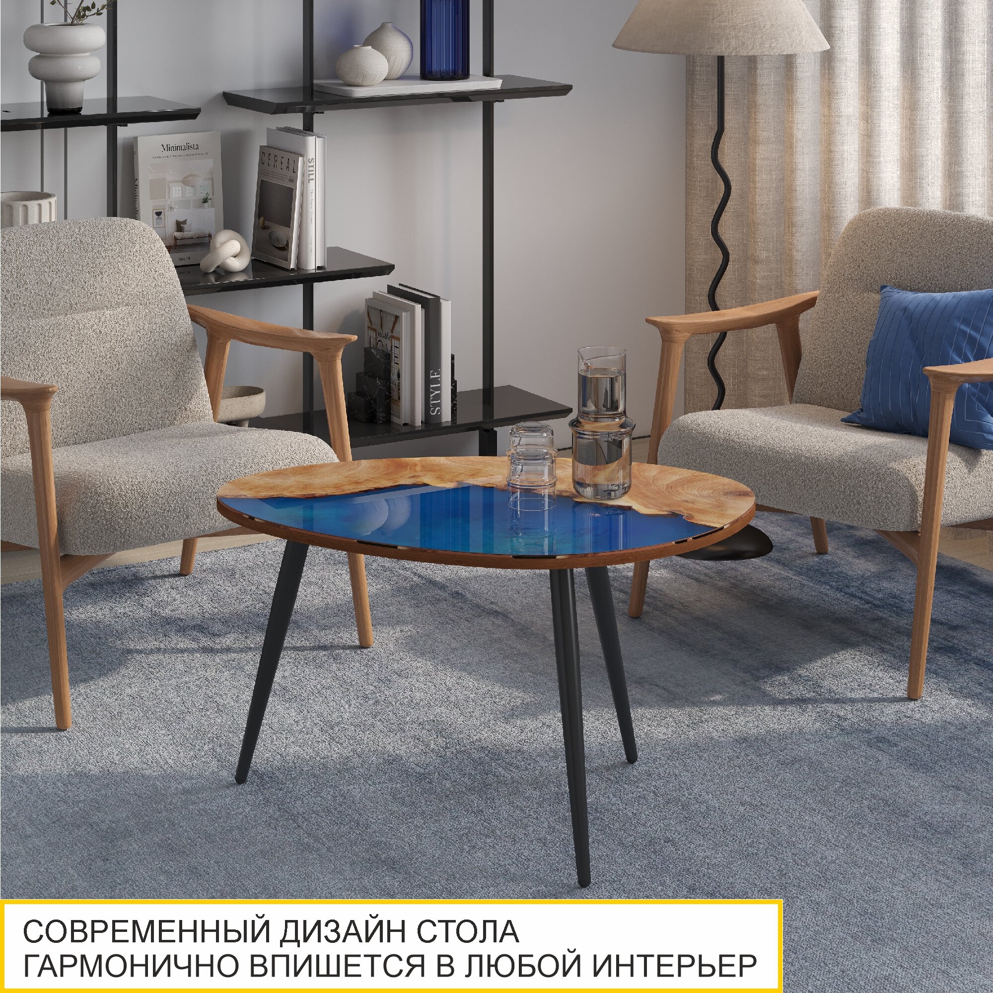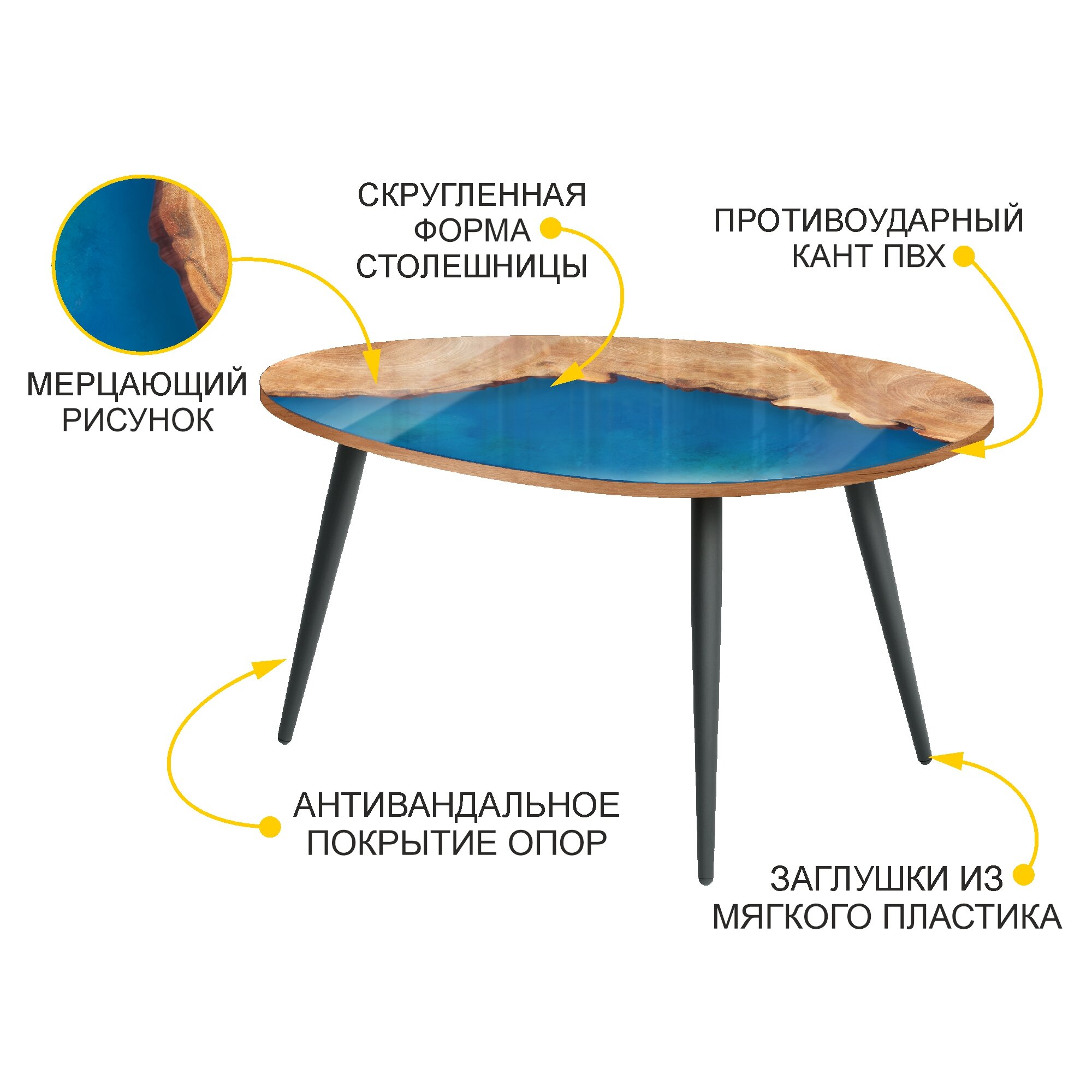 Журнальный стол Рим 16.1 (03) Река лазурная/Черный, 89х59х51 см интересное: