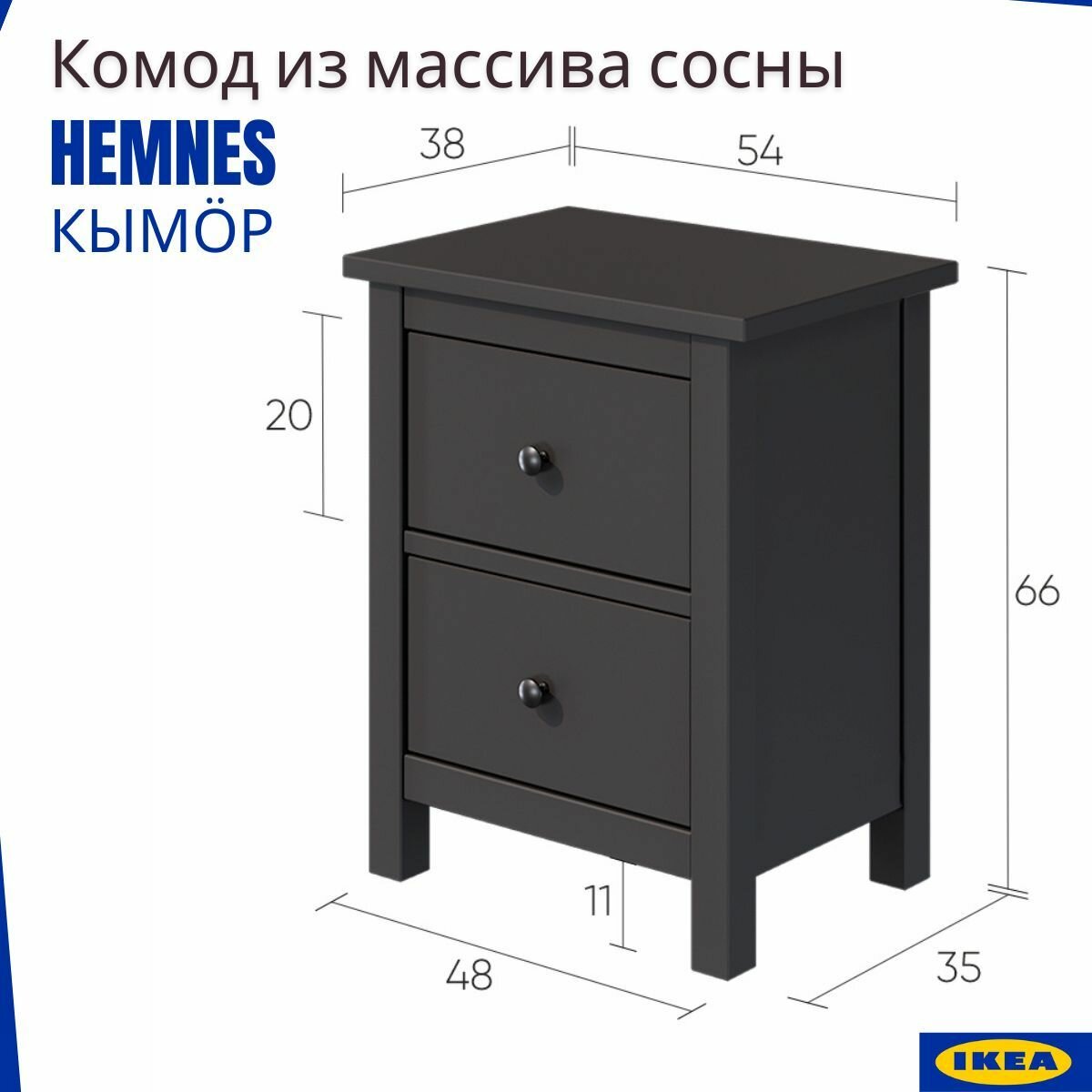 Ниже Вы можете прочитать отзывы на Комод на 2 ящика икеа (Хемнэс - Кымор), черный. Прикроватная тумба. Комод с ящиками 54x66x38 см, ознакомится с подробными характеристиками, посмотреть интересные обзоры и фотографии на Комод на 2 ящика икеа (Хемнэс - Кымор), черный. Прикроватная тумба. Комод с ящиками 54x66x38 см.