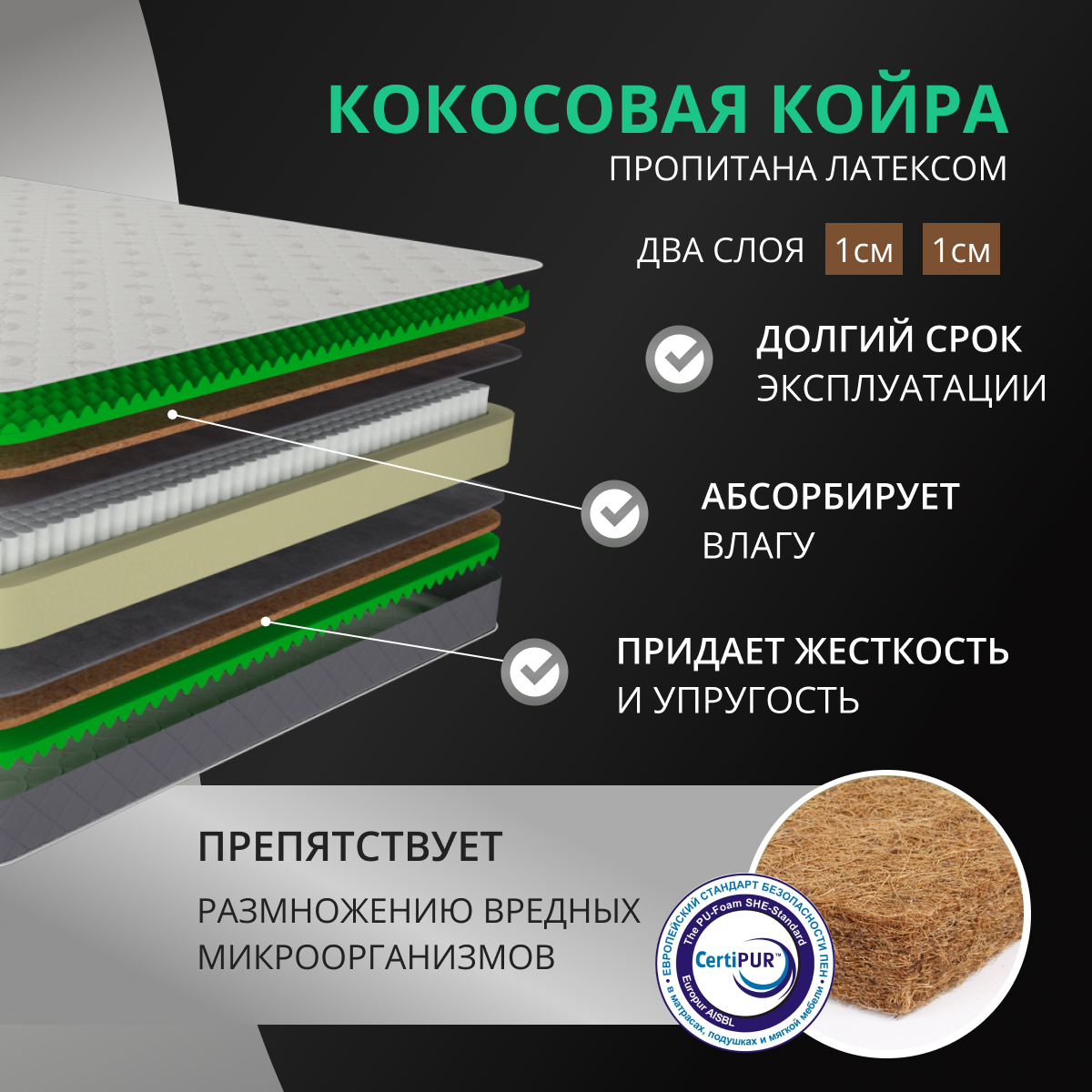 Матрас YANSON Massage Cocos Line 80х200 ортопедический пружинный c независимым блоком пружин, кокосовая койра и ппу