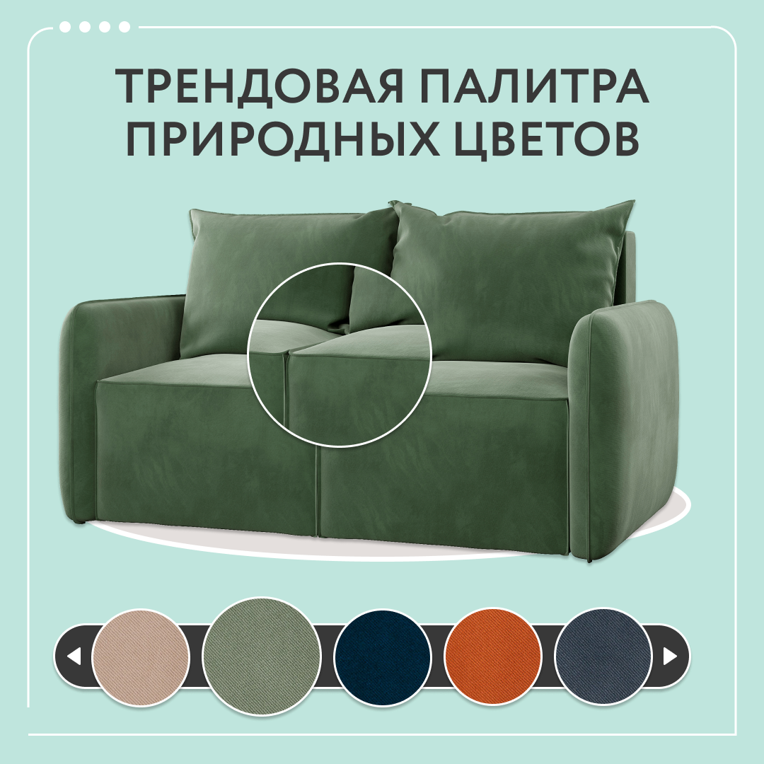 Диван тканевый прямой D1 furniture Портленд Мини зеленый