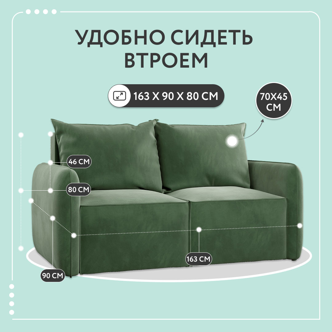 Диван-кровать раскладной прямой Портленд мини, аккордеон-евро, велюр, зеленый, 163х90х80