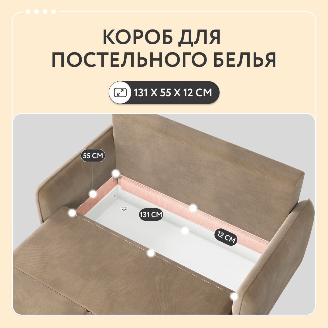 Диван-кровать раскладной прямой Портленд мини, аккордеон-евро, велюр, бежевый, 163х90х80