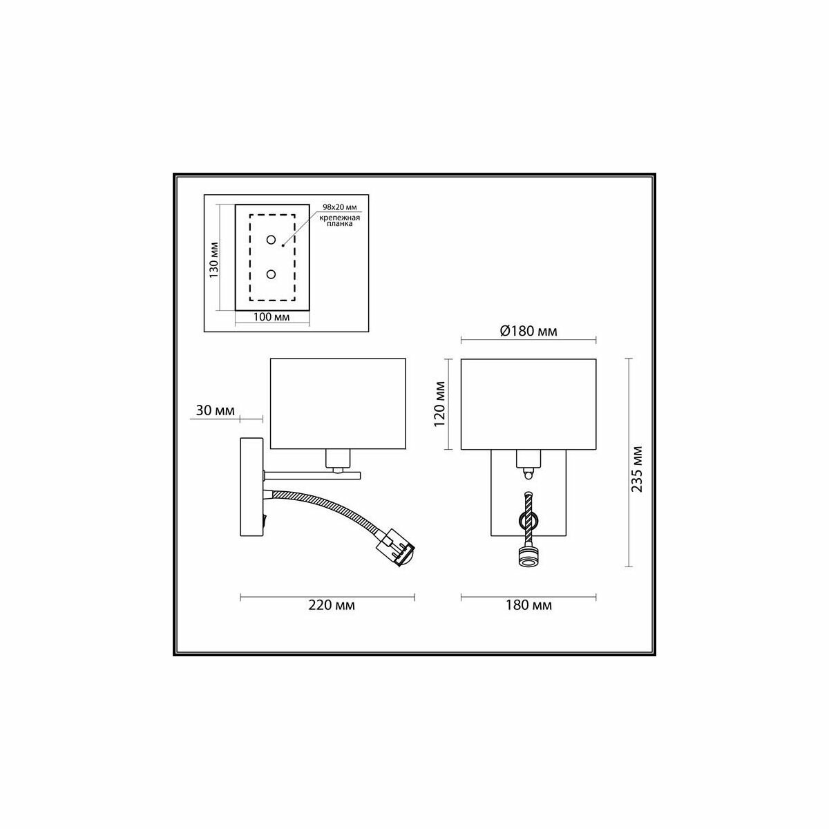 | Дополнительная информация | модель с дополнительным светодиодным спотом, светильник предназначен для использования со скрытой проводкой |