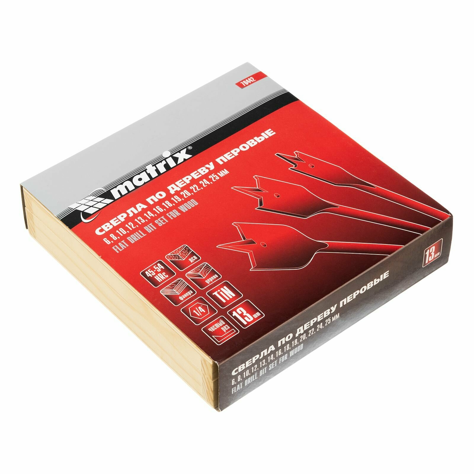 MATRIX Набор сверл перовых по дереву, 6-8-10-12-13-14-16-18-19-20-22-24-25 мм, 13 шт, деревянный кейс Matrix, ( 70442 )