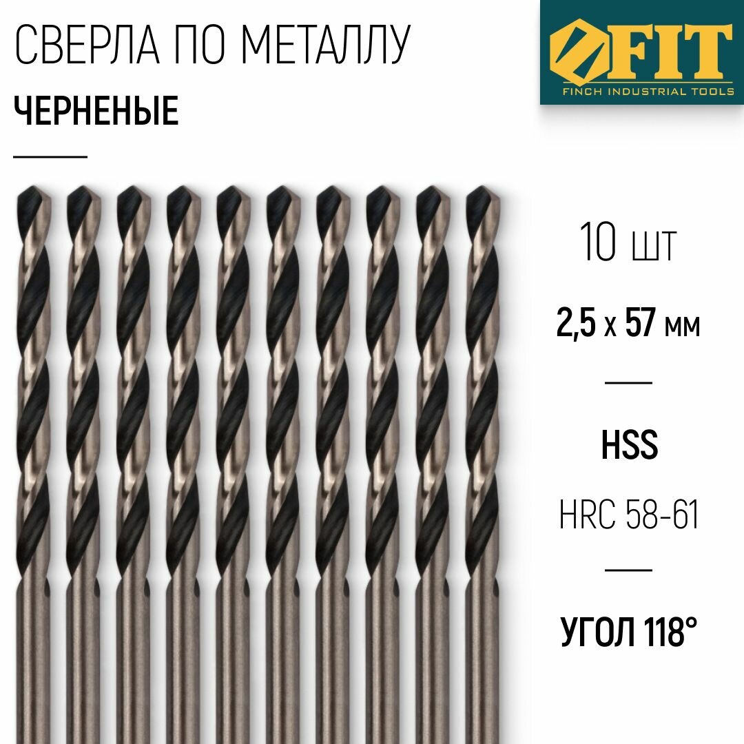 Купить Сверло 10 шт по металлу (2.5x30х57 мм, HSS) FIT черненые