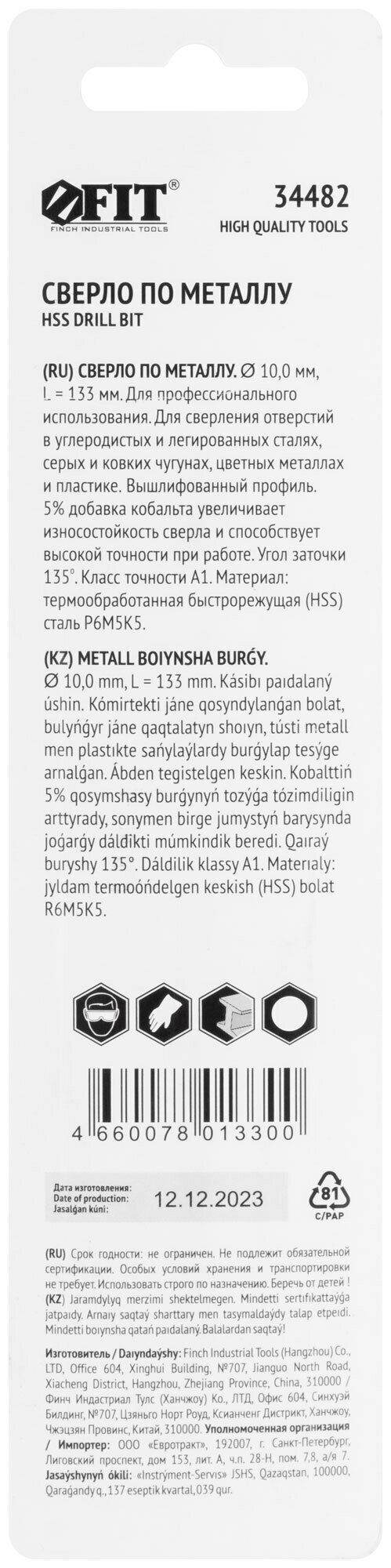 Купить Сверло по металлу 10.0х133мм HSS Cobalt FIT