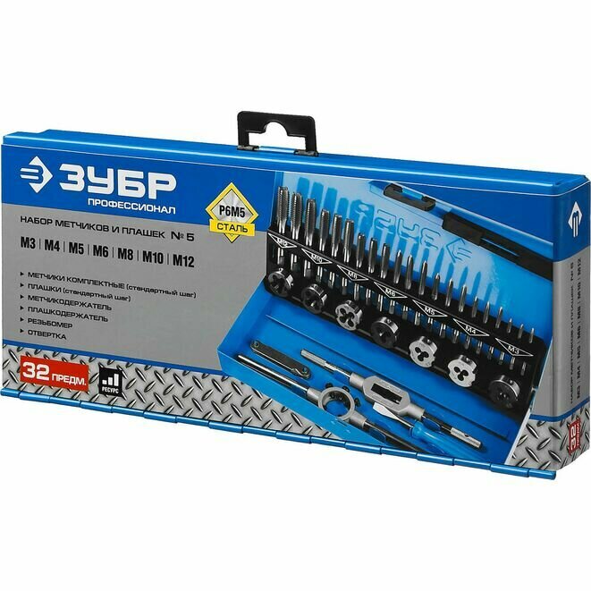 ЗУБР 32 предмета, сталь Р6М5, набор метчиков и плашек, Профессионал (28110-H32) интересное: