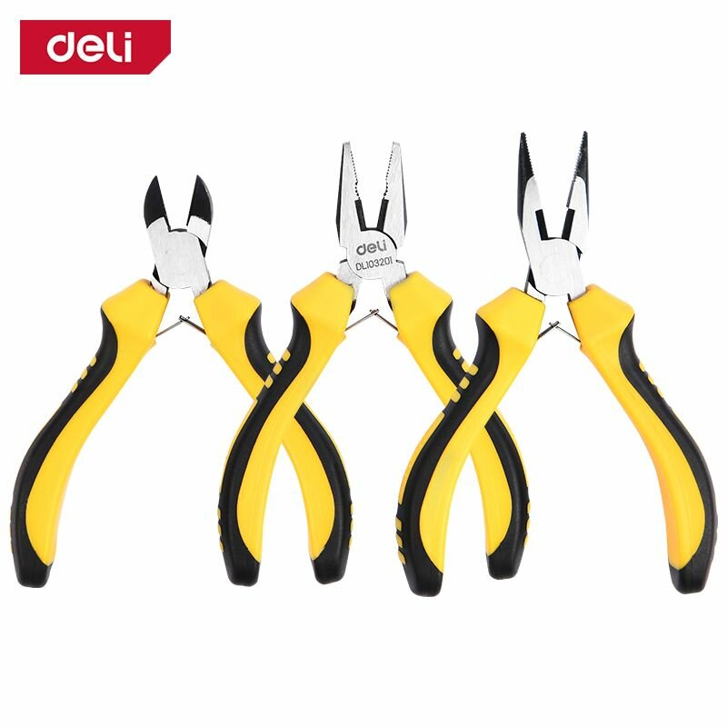 Набор мини-плоскогубцев 3шт Deli DL103201-3 (комбинированные 115мм, удлиненные 125мм, бокорезы 110мм, двухкомпонентная ручка) интересное: