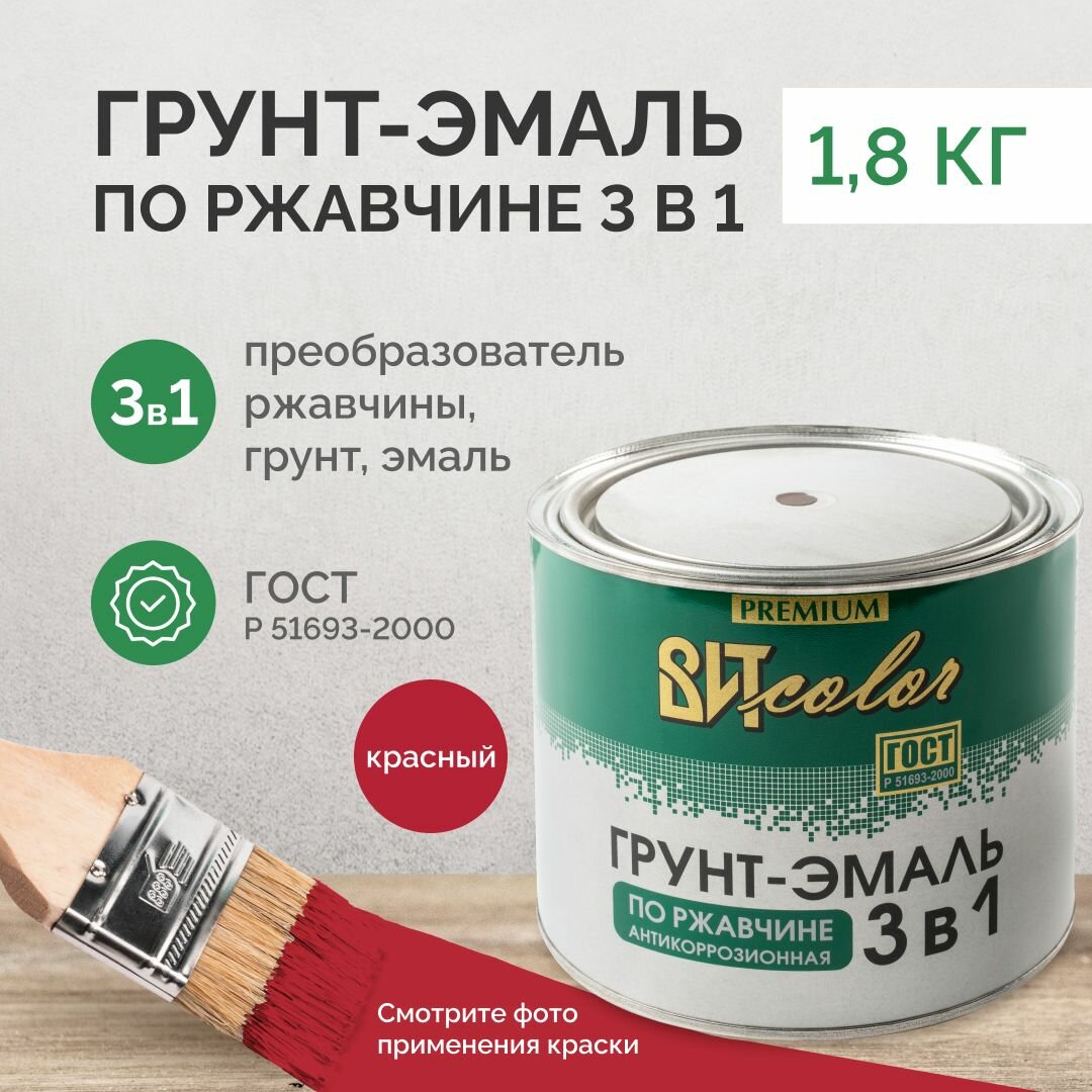 Ниже Вы можете прочитать отзывы на Грунт эмаль по ржавчине 3 в 1 Вит color красная 1,8кг, краска по ржавчине для металла, ознакомится с подробными характеристиками, посмотреть интересные обзоры и фотографии на Грунт эмаль по ржавчине 3 в 1 Вит color красная 1,8кг, краска по ржавчине для металла.
