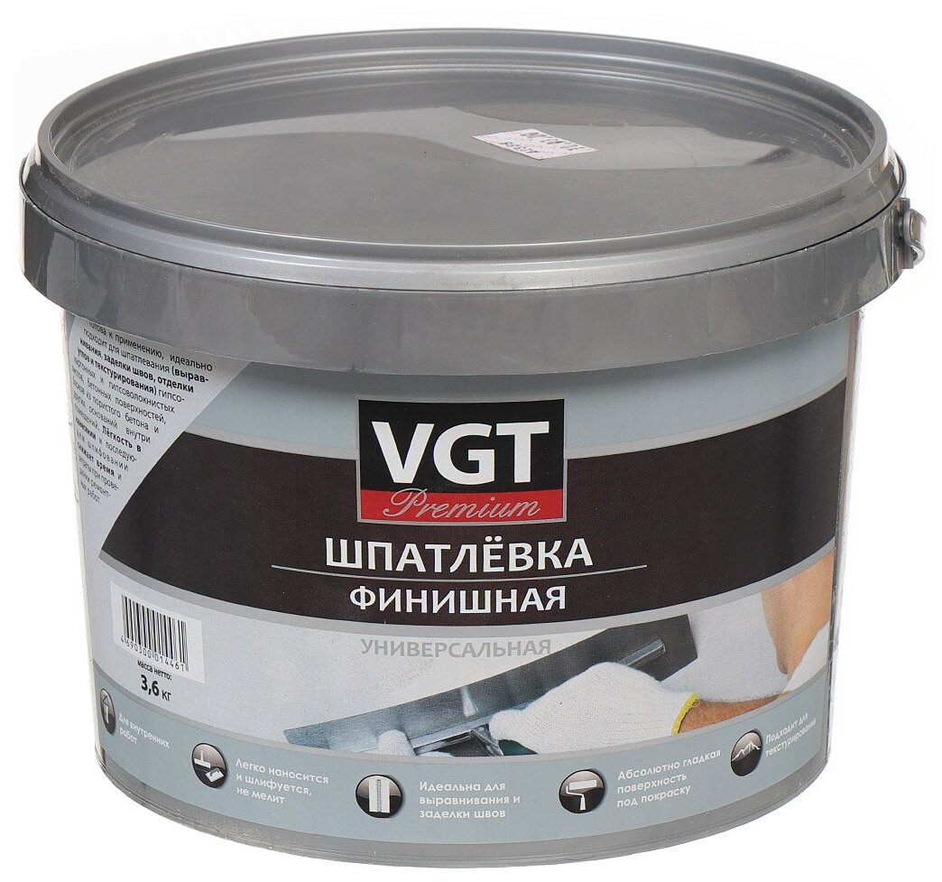 Шпатлевка VGT, Premium, акриловая, финишная, 3.6 кг интересное: