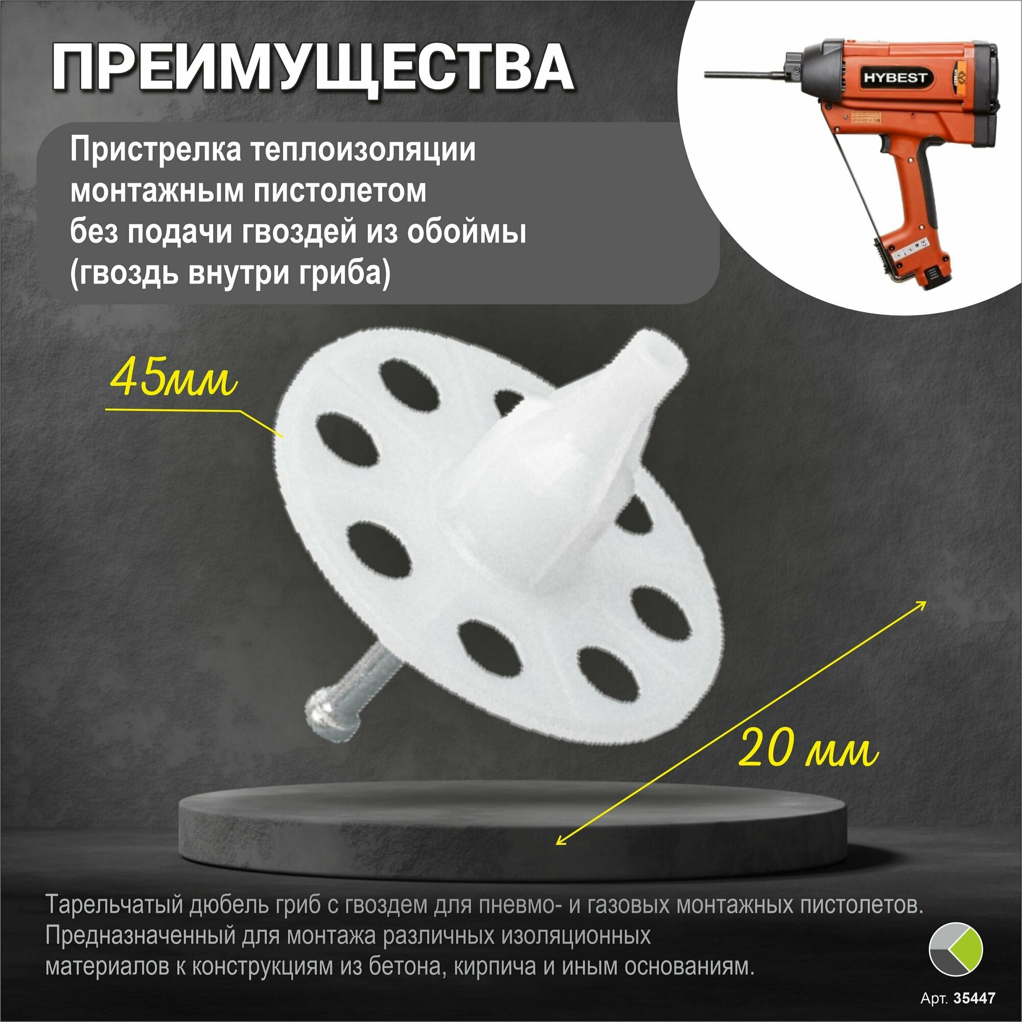 Тарельчатый дюбель гриб с гвоздем для монтажных пистолетов 20мм (уп/250шт)