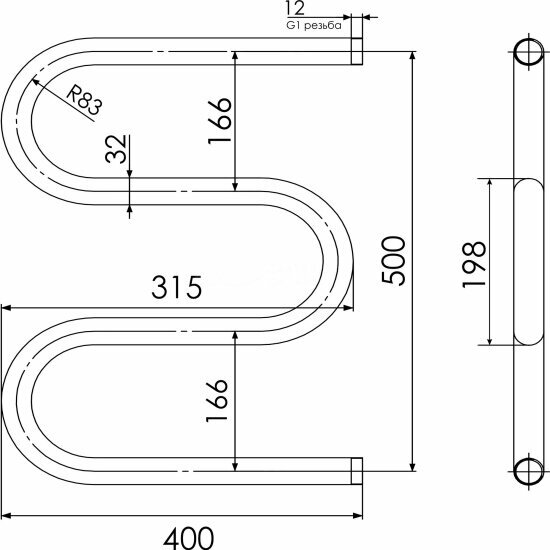 Водяной полотенцесушитель Aquanet Mauro(г2) 800x500