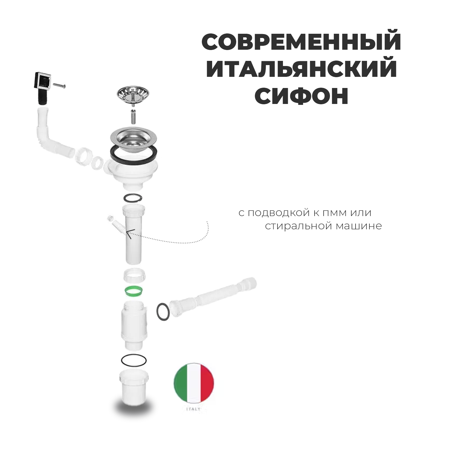 Мойка для кухни нержавеющая врезная 40*50 с итальянским сифоном Wisent WWS34050/WGER010