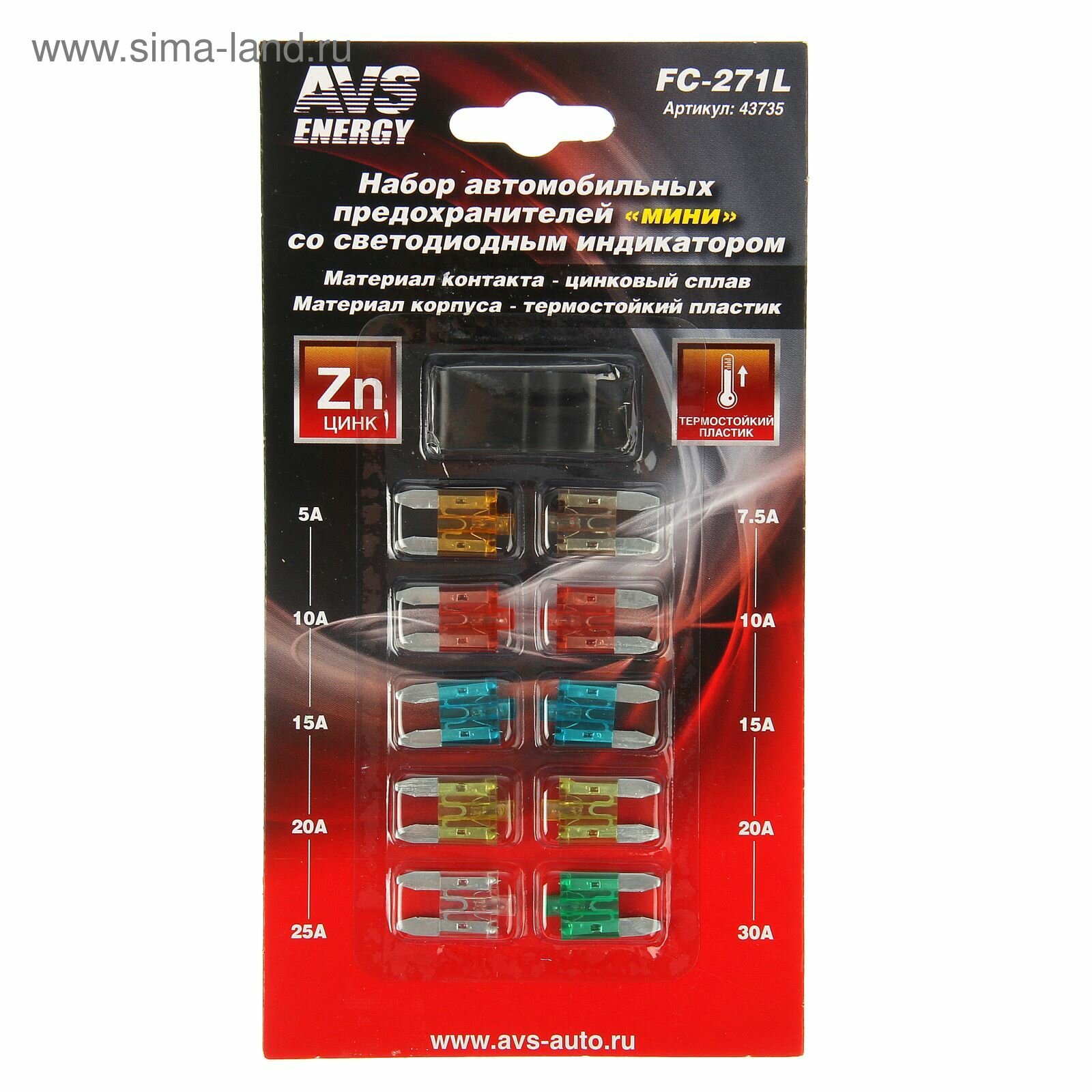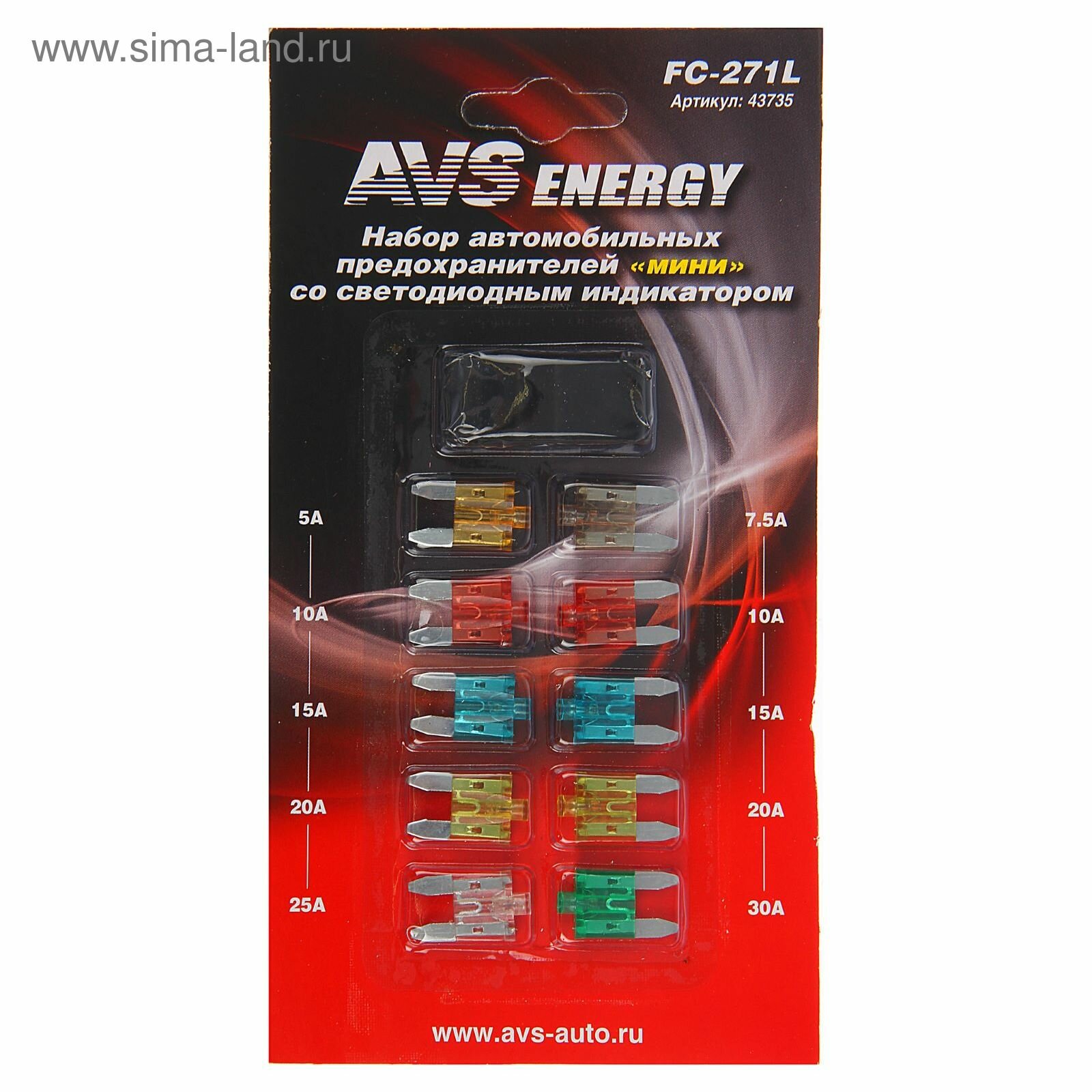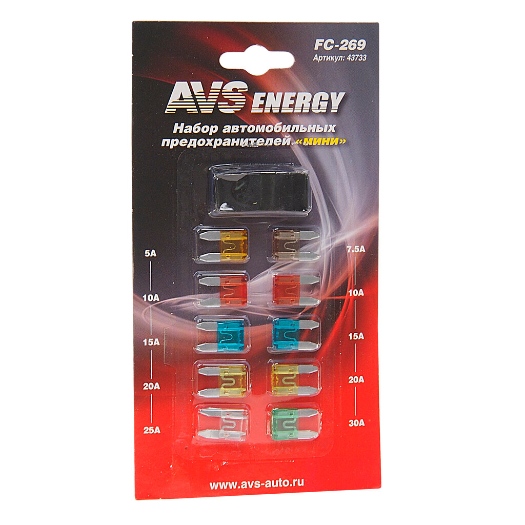 Предохранитель 5-30A Флажковый Мини Купер/Mini Cooper Со Светодиодом Комплект 10Шт. Avs AVS арт. 43735