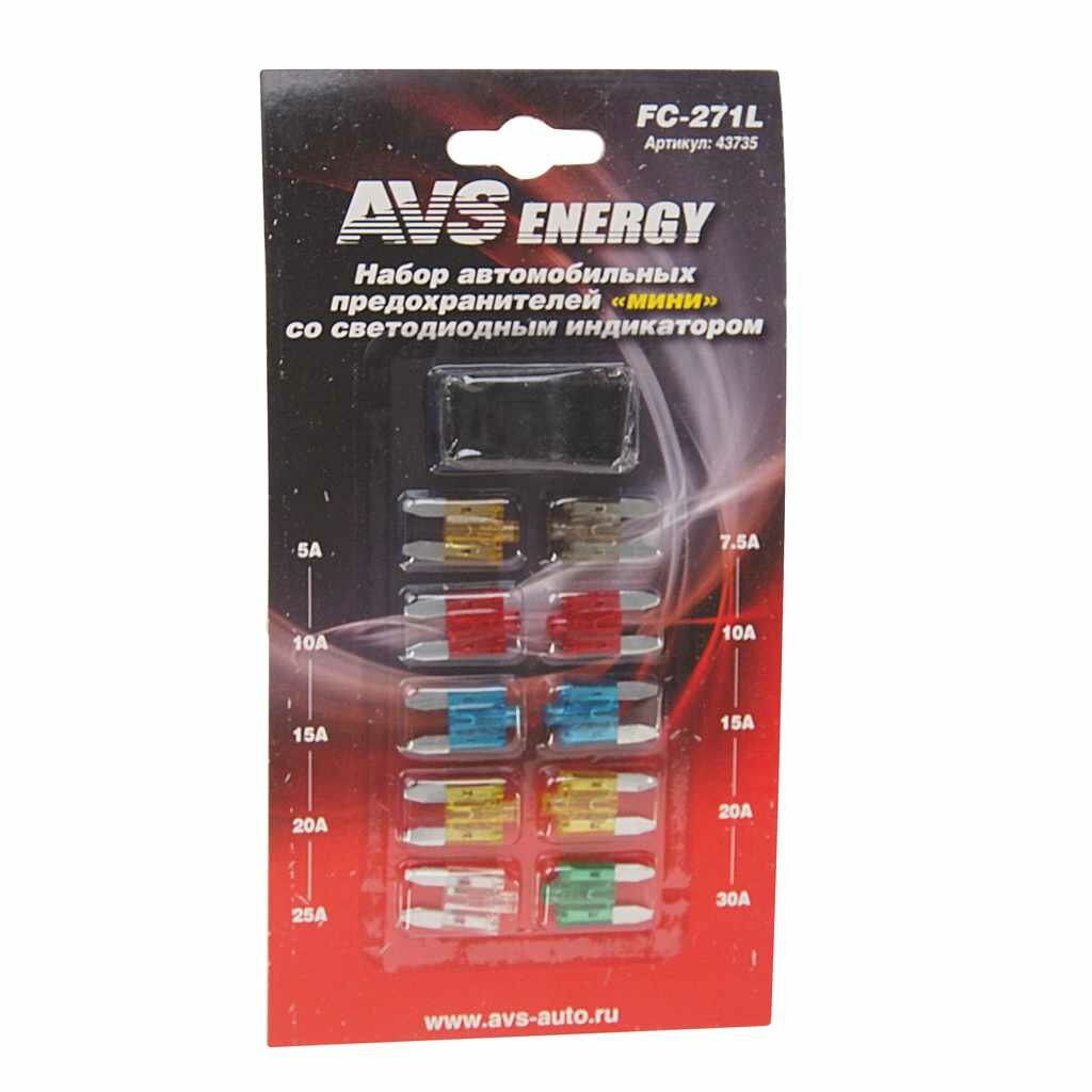 Предохранители автомобильные AVS "Мини", 5-30 А, со светодиодом, FC-271L, 10 шт