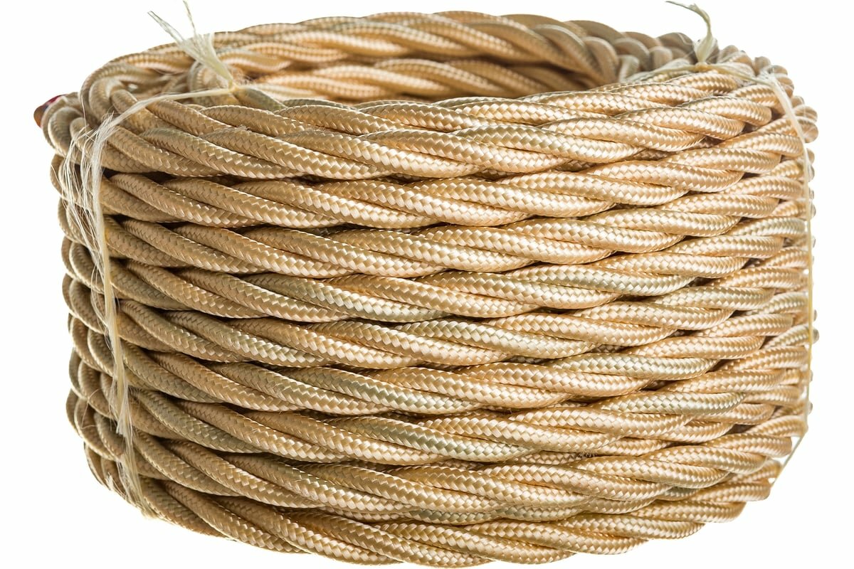 Витой ретро провод BIRONI Бирони 2х0,75 матовый, 15 м/уп, B1-422-719-15 цвет: песочное золото