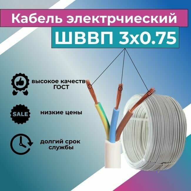 СохранитьПровод ШВВП 3х0.75 10метров Белый Калужский кабельный завод ГОСТ интересное: