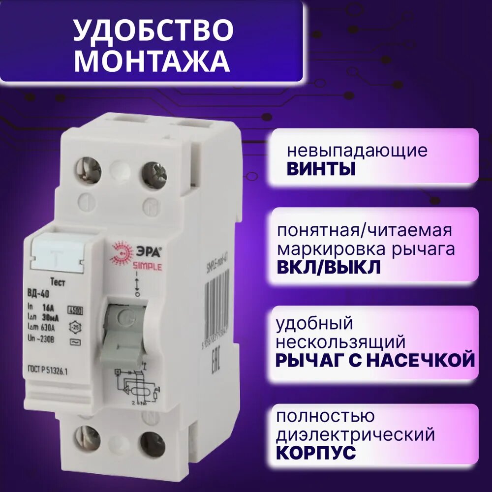 Выключатель диф тока/ УЗО ЭРА ВД-40 SIMPLE-mod-41 2P 16А 30мА AC интересное:
