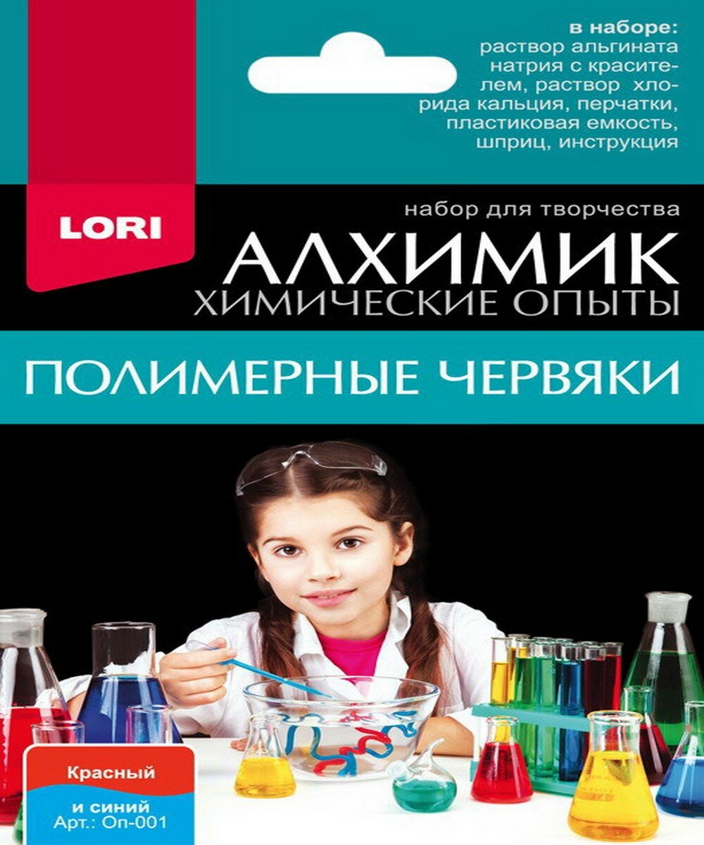 Lori Набор Химические опыты.Полимерные червяки красный и синий