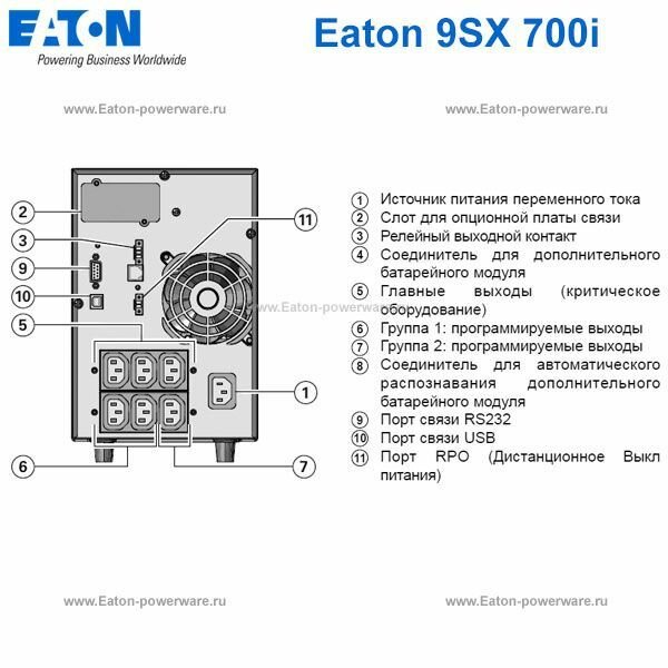 ИБП с двойным преобразованием (Online) 700ВА Eaton 9SX700I (630Вт, 6*IEC320, 190~276В, USB, COM, RJ интересное:
