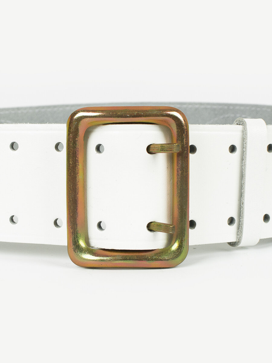 Ремень офицерский прошитый кожаный парадный 50 мм цвет белый (размер: l - длина 130 см)