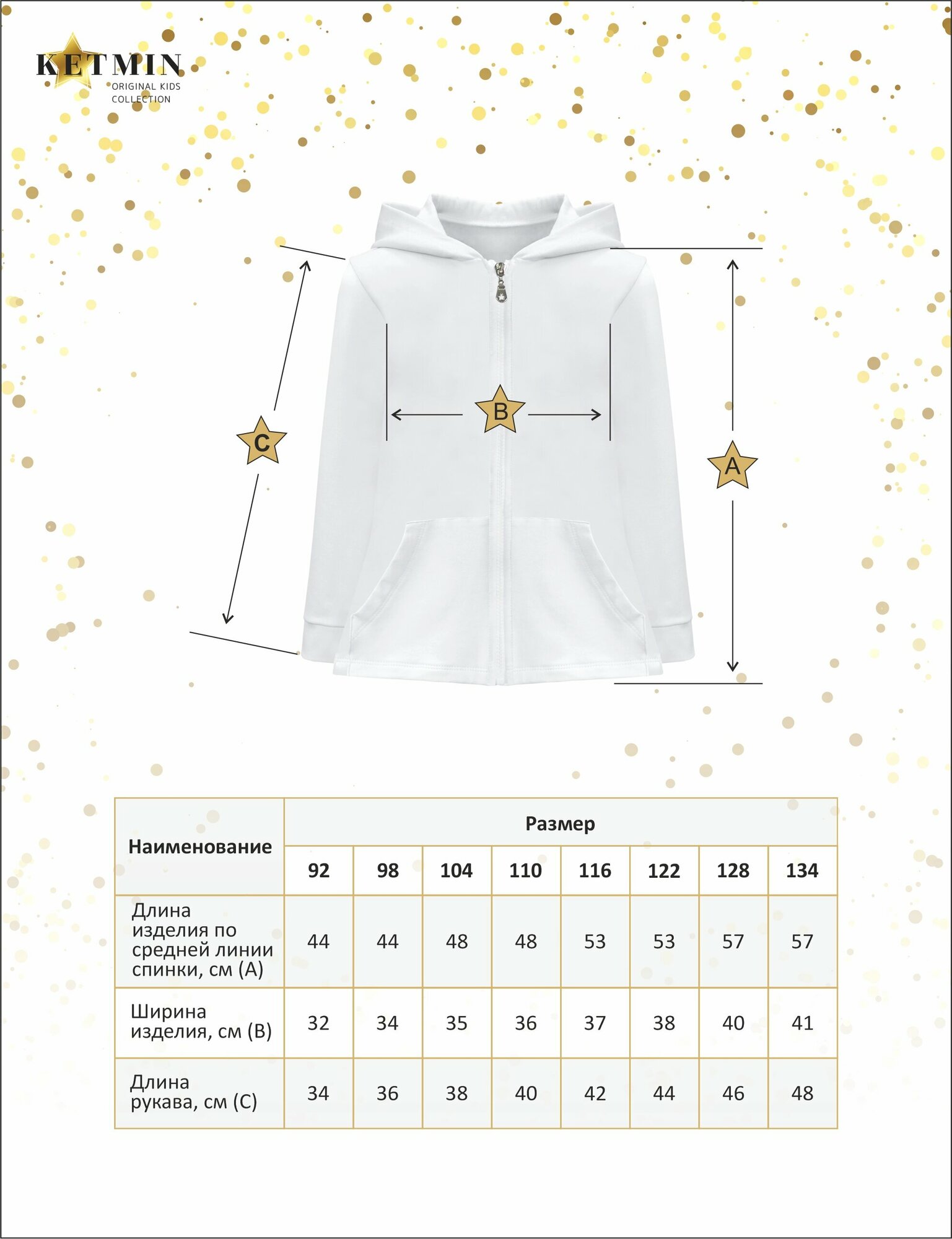 Толстовка KETMIN на молнии детская PREMIUM LINE, размер 104, белая