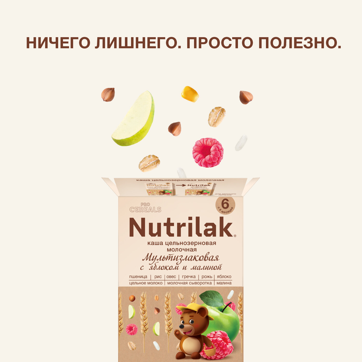 Купить Каша Nutrilak молочная PROCEREALS мультизлаковая с яблоком и малиной, цельнозерновая, без сахара, с 6 месяцев, 200 г