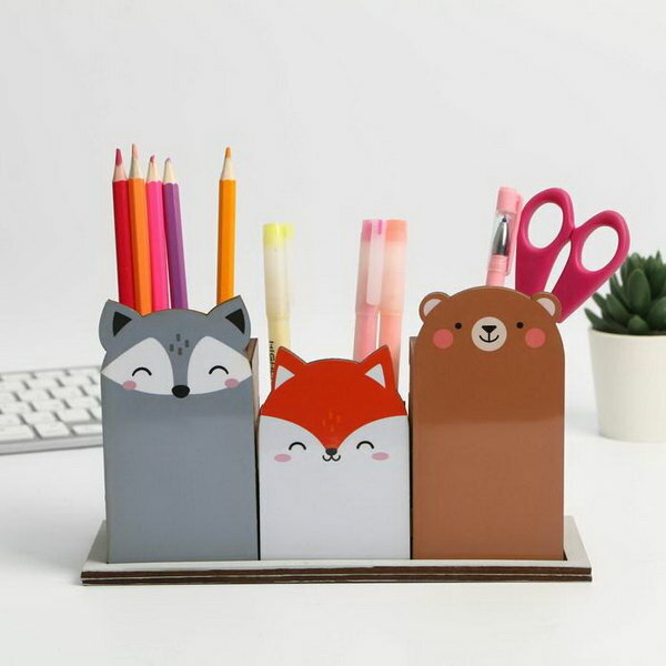 Органайзер для канцелярии тройной, на подставке "Мишка" интересное: